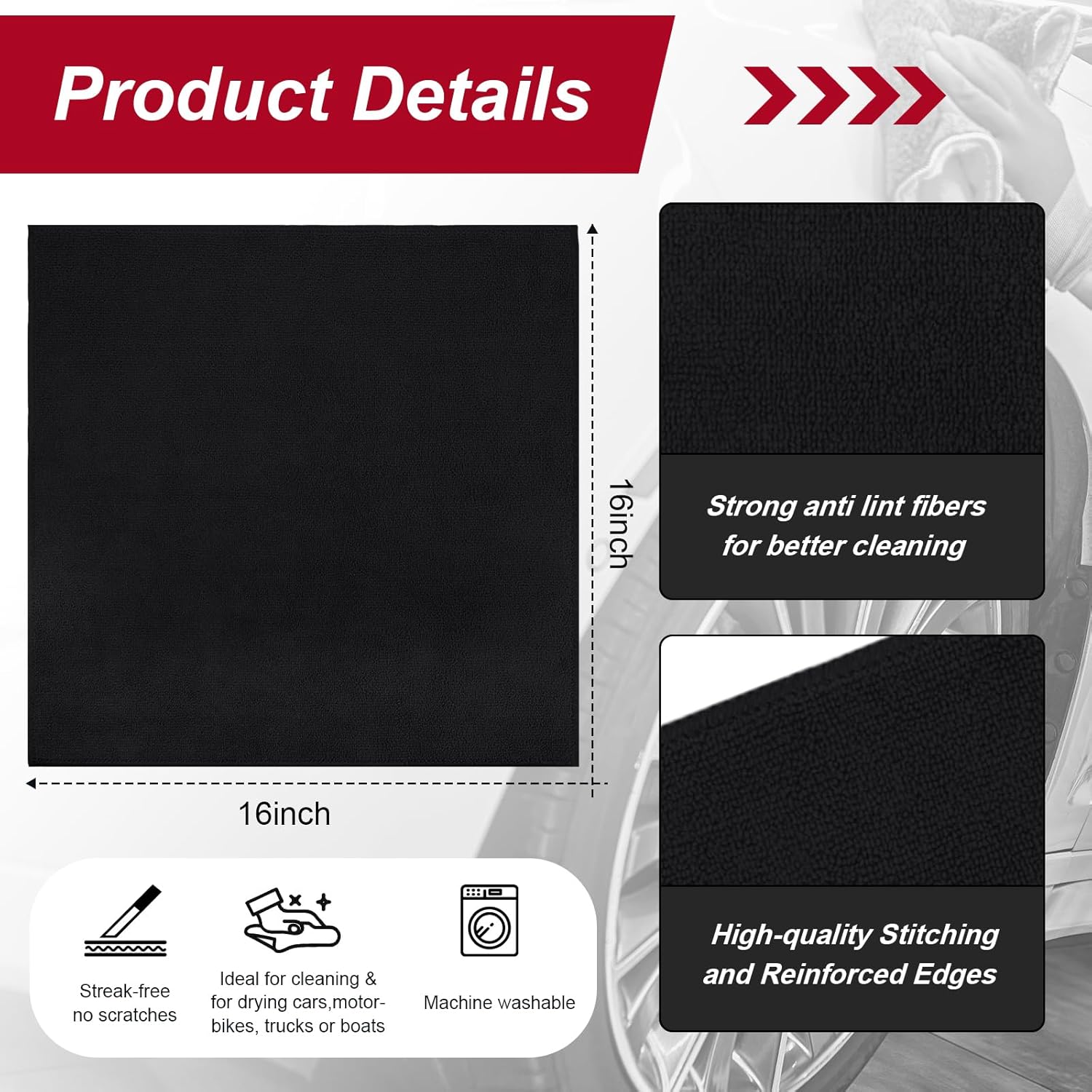 - Value Pack and Convenient Size: 200 pieces of microfiber car towels, packed in a large quantity, enough towels to meet your daily use and replacement needs; Each cloth measures approximately 16 x 16 inches, a good size to provide ample cleaning surface area