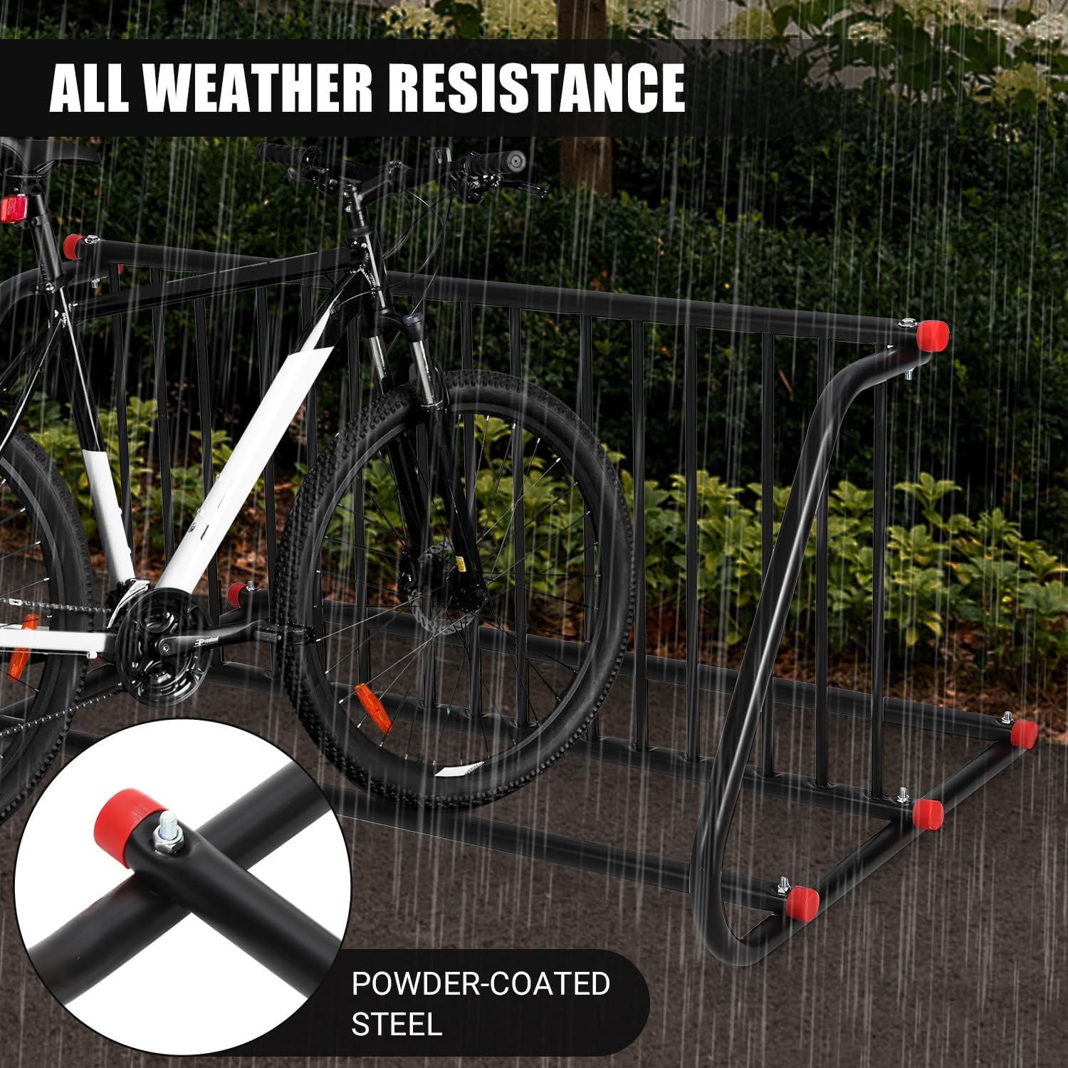 - [COMMERCIAL-GRADE DURABILITY] Built with heavy-duty powder-coated steel, this commercial bike rack resists rust and harsh weather, perfect for high-traffic areas like schools, shops, or apartments. Its sturdy frame supports daily use without bending or wear.