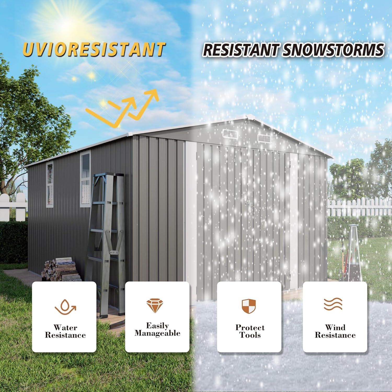 - MULTI-APPLICATION OUTDOOR SHED: The metal shed can better store your tools such as lawn mowers,bicycles,BBQ grills,and more. You also can use this storage shed as a pet shelter or greenhouse. Stay organized effortlessly.