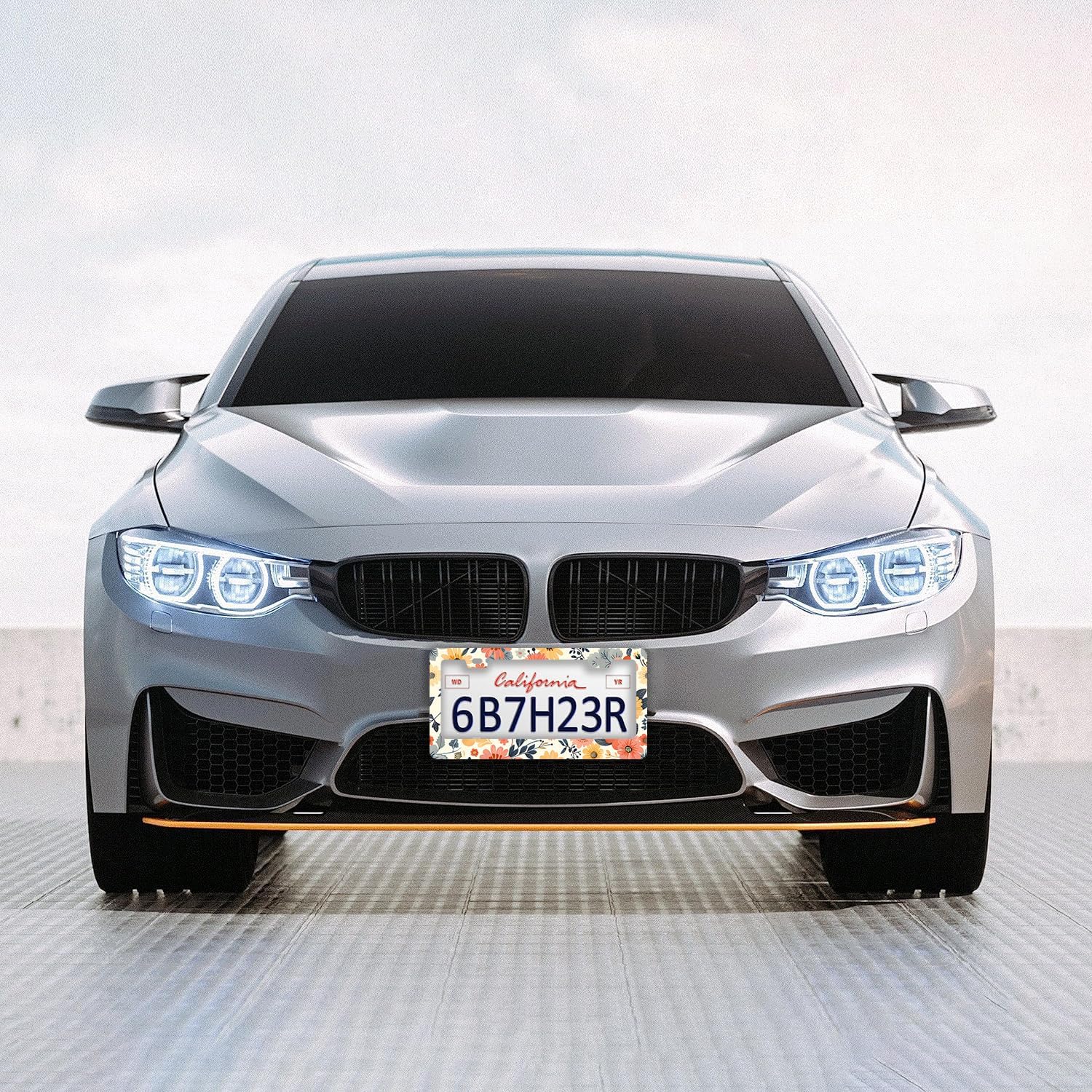 Colorful Floral Flowers License Plate Frames - 2 Pcs Set 2 Holes Stainless Steel Metal Auto Car Accessories Decoration License Plate Frame Cover Size 6.3" x 12.2" Fit US Vehicles for Women Men Gift