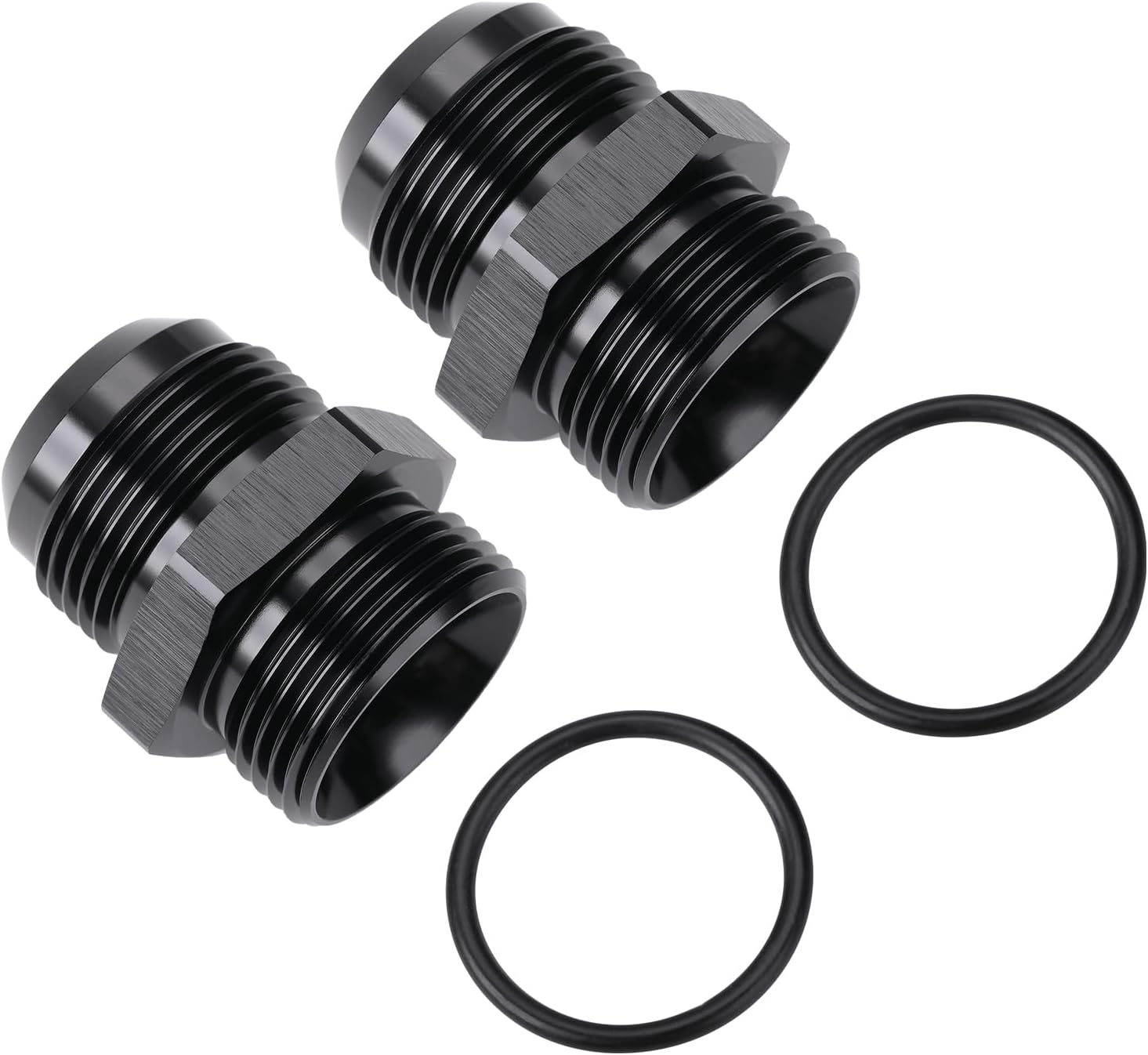 16AN Male Flare to 16AN ORB O-ring Boss Fuel Pump Rail Adapter Fitting Aluminum Black, Pack of 2