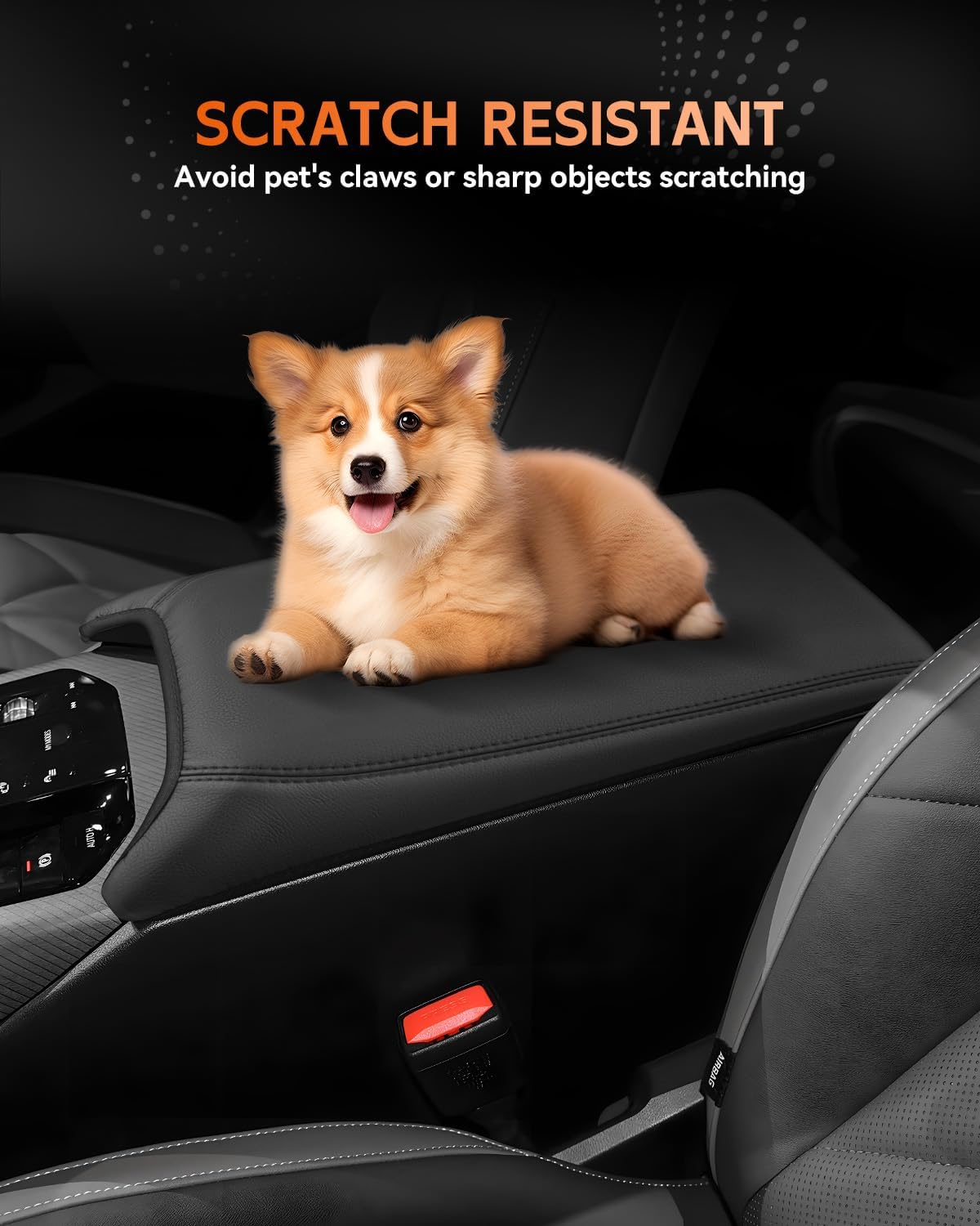 - [Excellent Scratch Resistance] The car center console mat is made of high quality PU microfiber leather, thick enough to keep out pet paws, dust and sticky fingers. The surface is waterproof, wear-resistant and durable, breathable, light weight and easy to wipe clean of dirt.