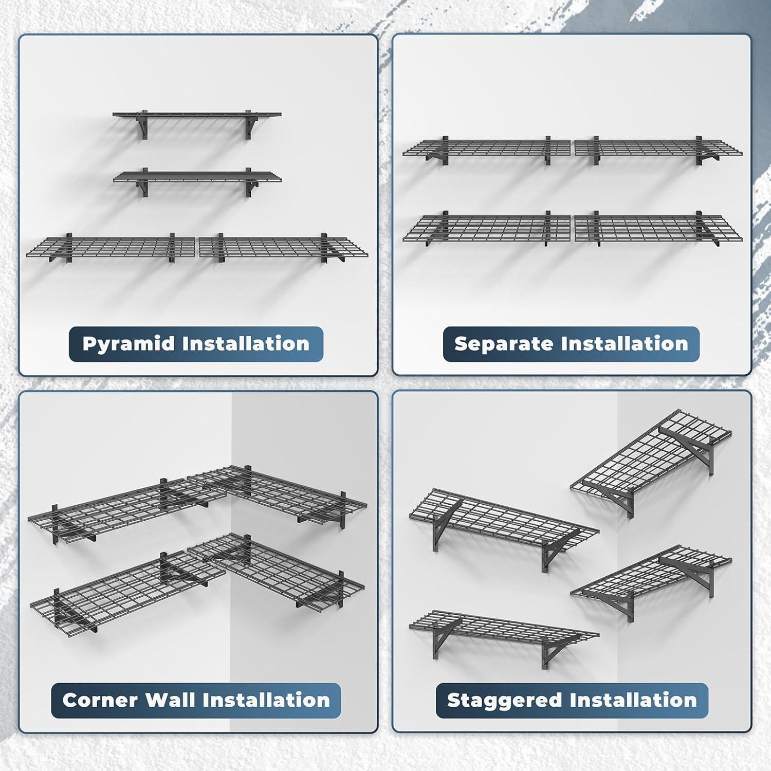 - đŚăAll-in-One Mesh Storageă- The seamless welded mesh design securely holds tires, sports gear, toolboxes, and plastic bins without sagging. Open-grid airflow prevents dust buildup, while the anti-rust coating ensures durability in humid garage environments.