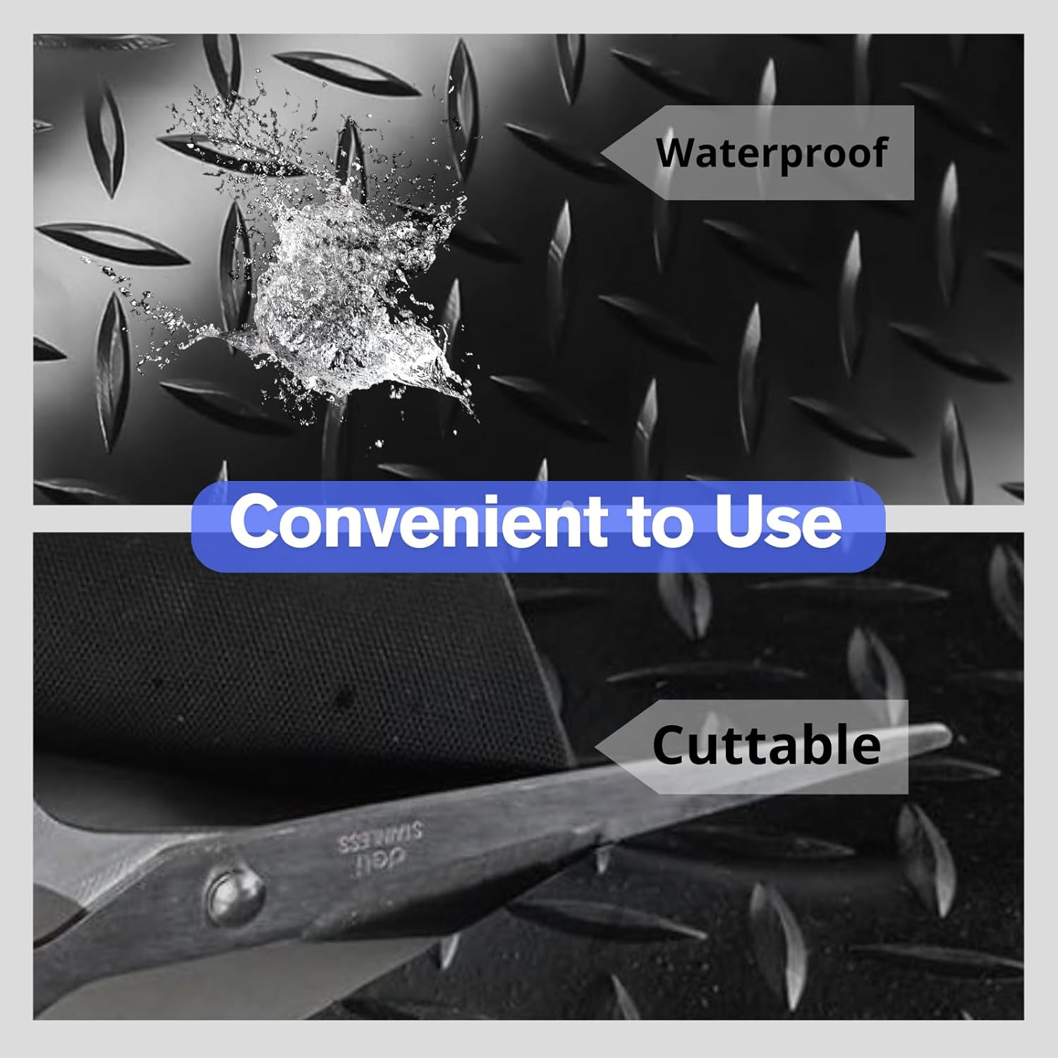 - Anti-slip Design:The rubber mats for garage floor features a diamond plate texture, significantly enhancing traction with the ground. Its surface grip becomes even stronger when wet, effectively preventing slipping incidents while delivering enhanced stability and non-slip protection.