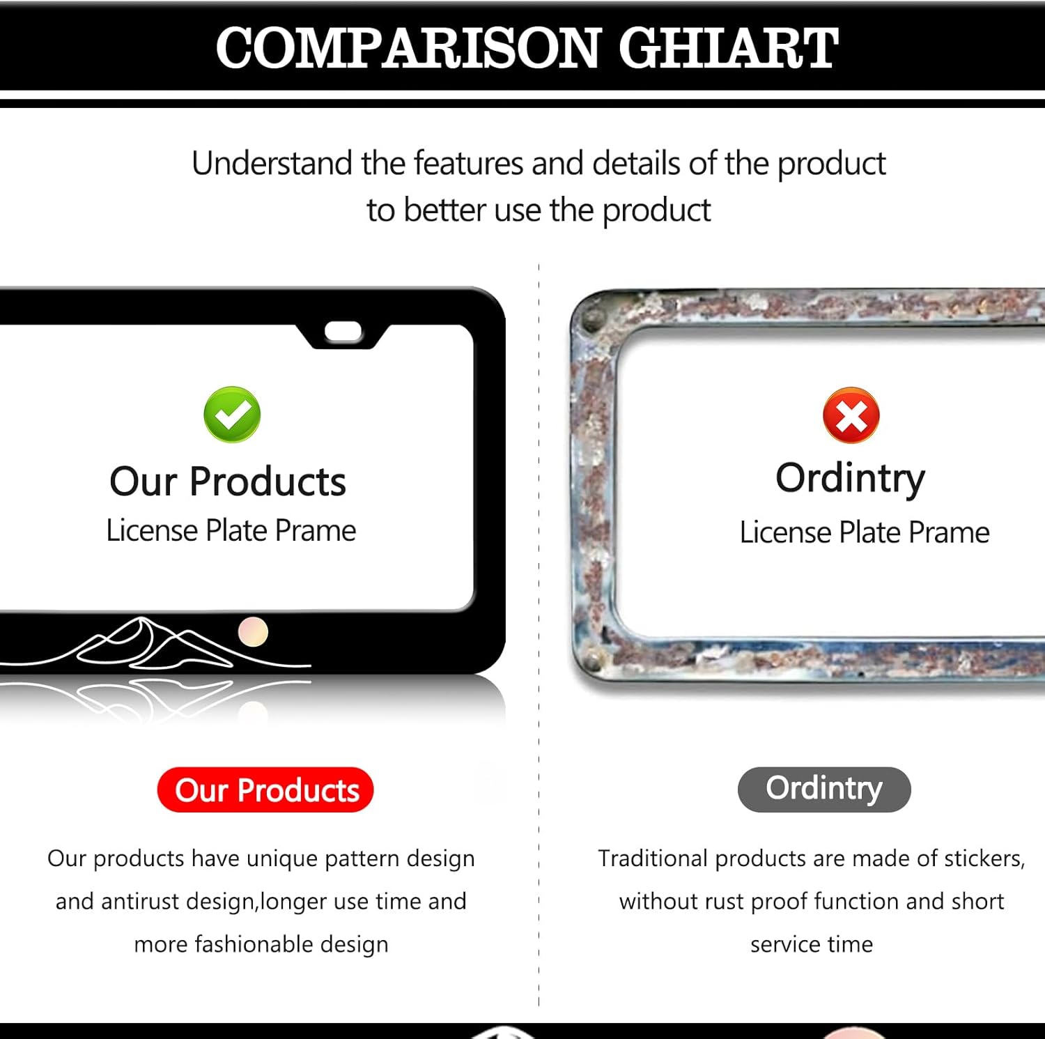 - Durable Plate Frame: Made of high-quality stainless steel, the design style is fashionable, which is very suitable for decorating the front and rear of the car license plate;Make your car more attractive and recognizable, and make your car distinctive