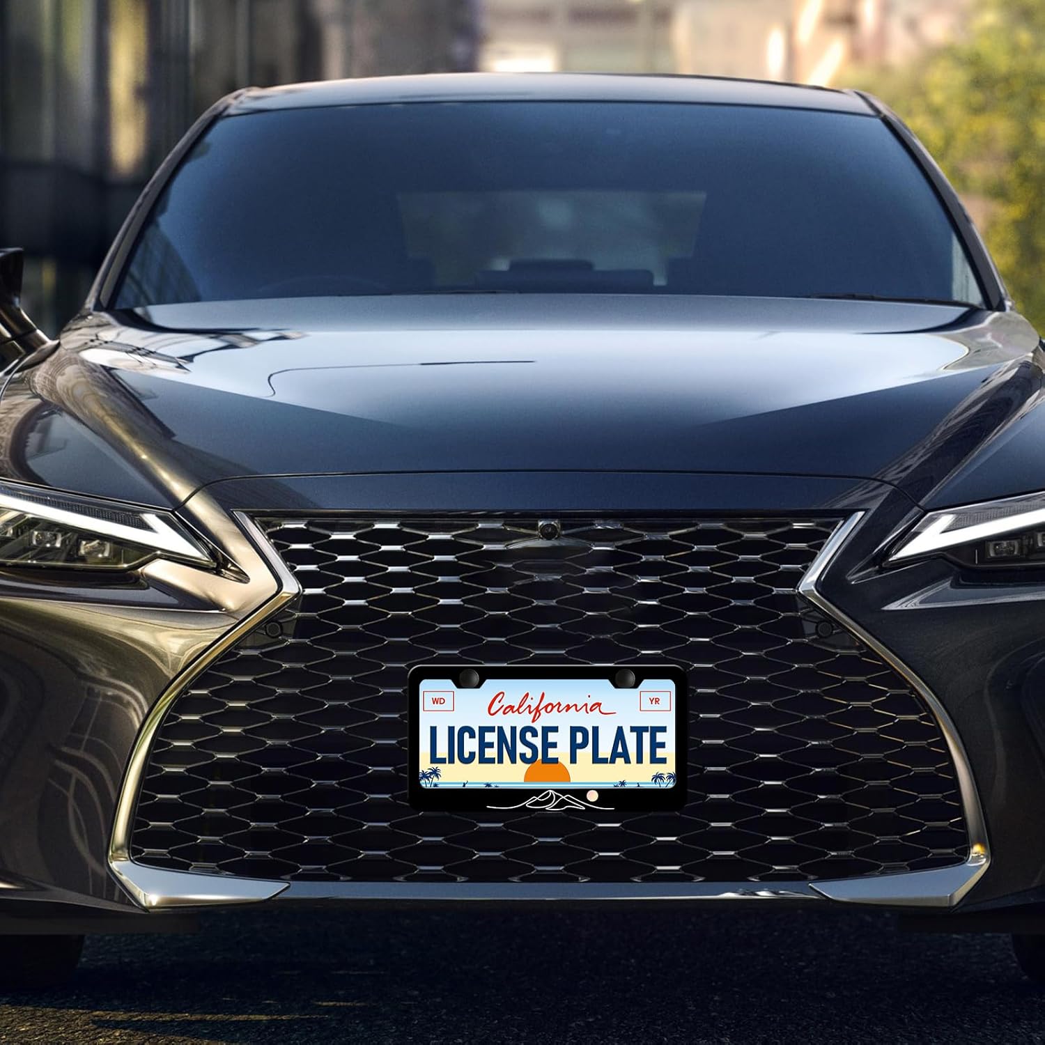 Moon Mountain License Plate Frames - 2 Pack Black Mountain Stainless Steel License Plate Holder,Rust-Proof Waterproof Car Decorative Tag Frame with Screws Fasteners Caps
