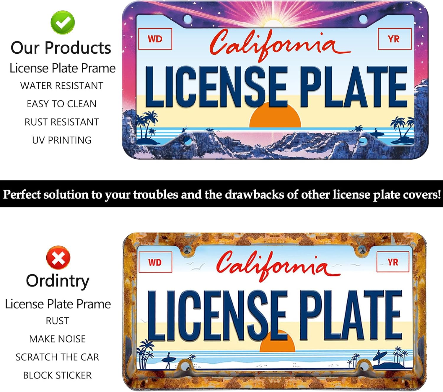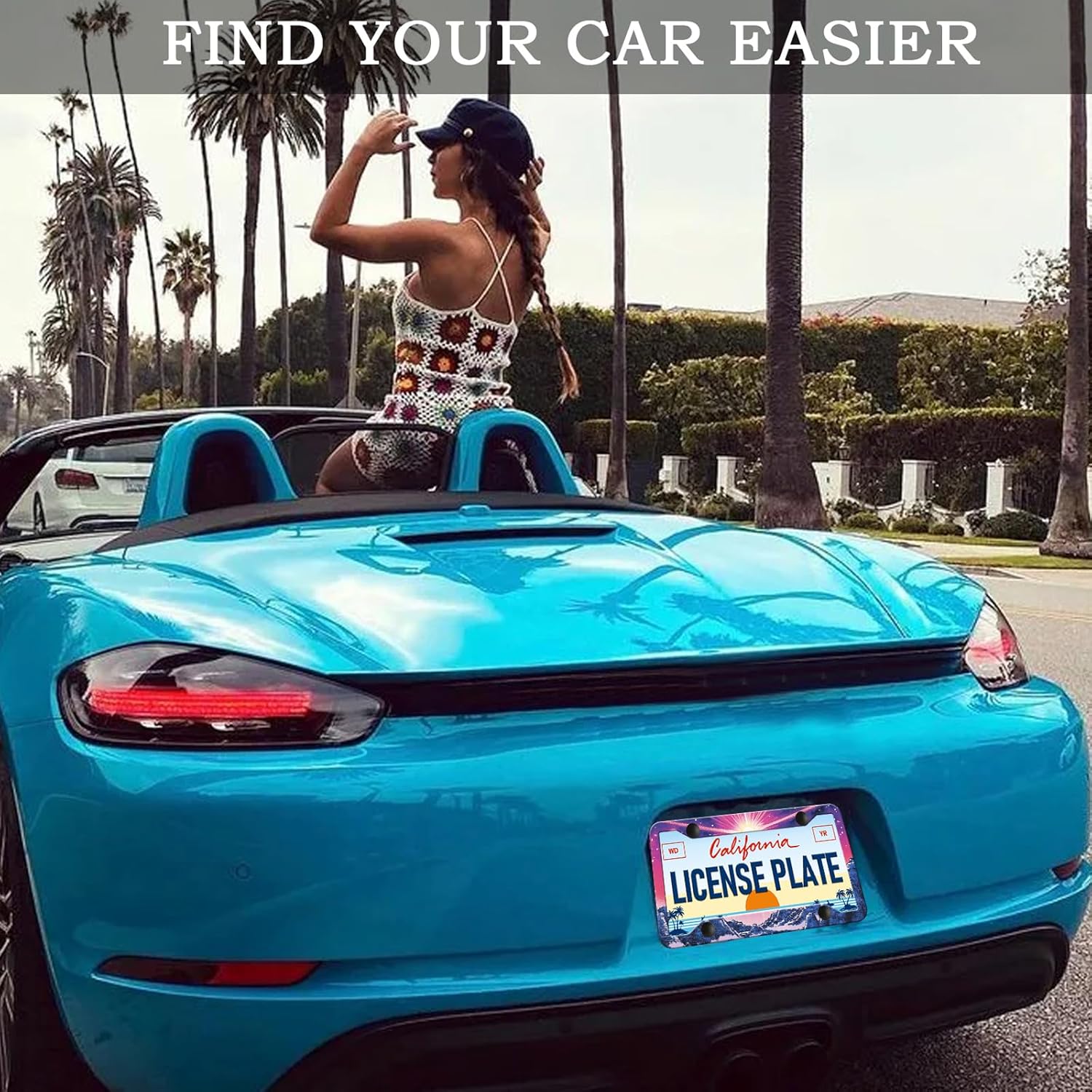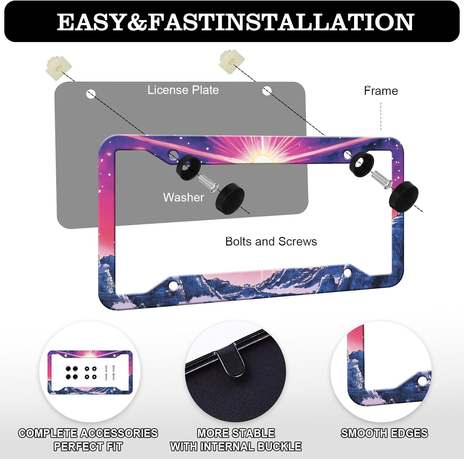 Sunset Mountain Anime License Plate Frames - 2 Pack Magic Colorful Stainless Steel License Plate Holder,Rust-Proof Waterproof Car Decorative Tag Frame with Screws Fasteners Caps