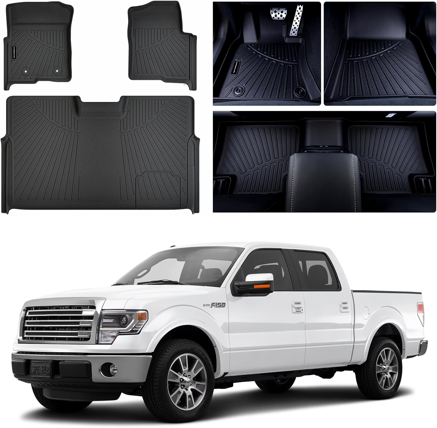 - ăCUSTOM FITMENTăPrecision-Tailored ProtectionïŒ3D laser-scanned to fit 2010-2014 Ford F-150 SuperCrew Cab (excl. manual transfer case shift) with edge-to-edge coverage, matching OEM floor contours perfectly.