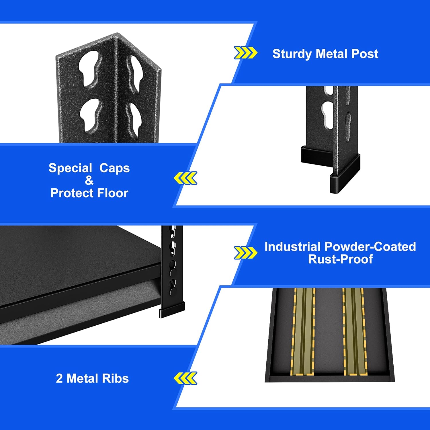 48" W Garage Shelving Heavy Duty, 1800LBS Loads Adjustable Garage Storage Shelves, 4-Tier Metal Shelving Units and Storage Racks, Industrial Utility Shelf,48" Wx16 Dx72 H, Black