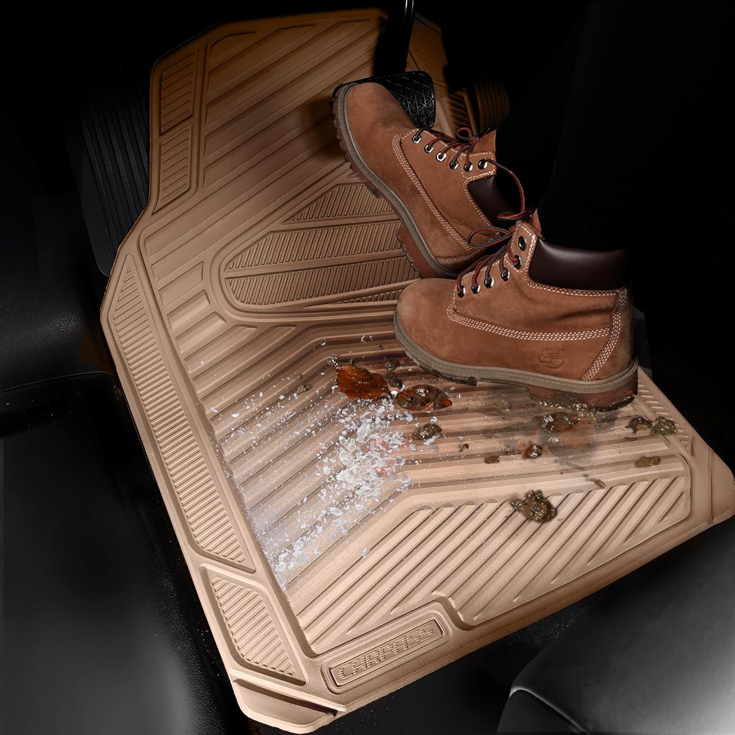 - EASY TO CLEAN:No need to worry about spills, dirt, or stains on your beige all weather car floor mats because they can be easily wiped clean or washed off with soap and water