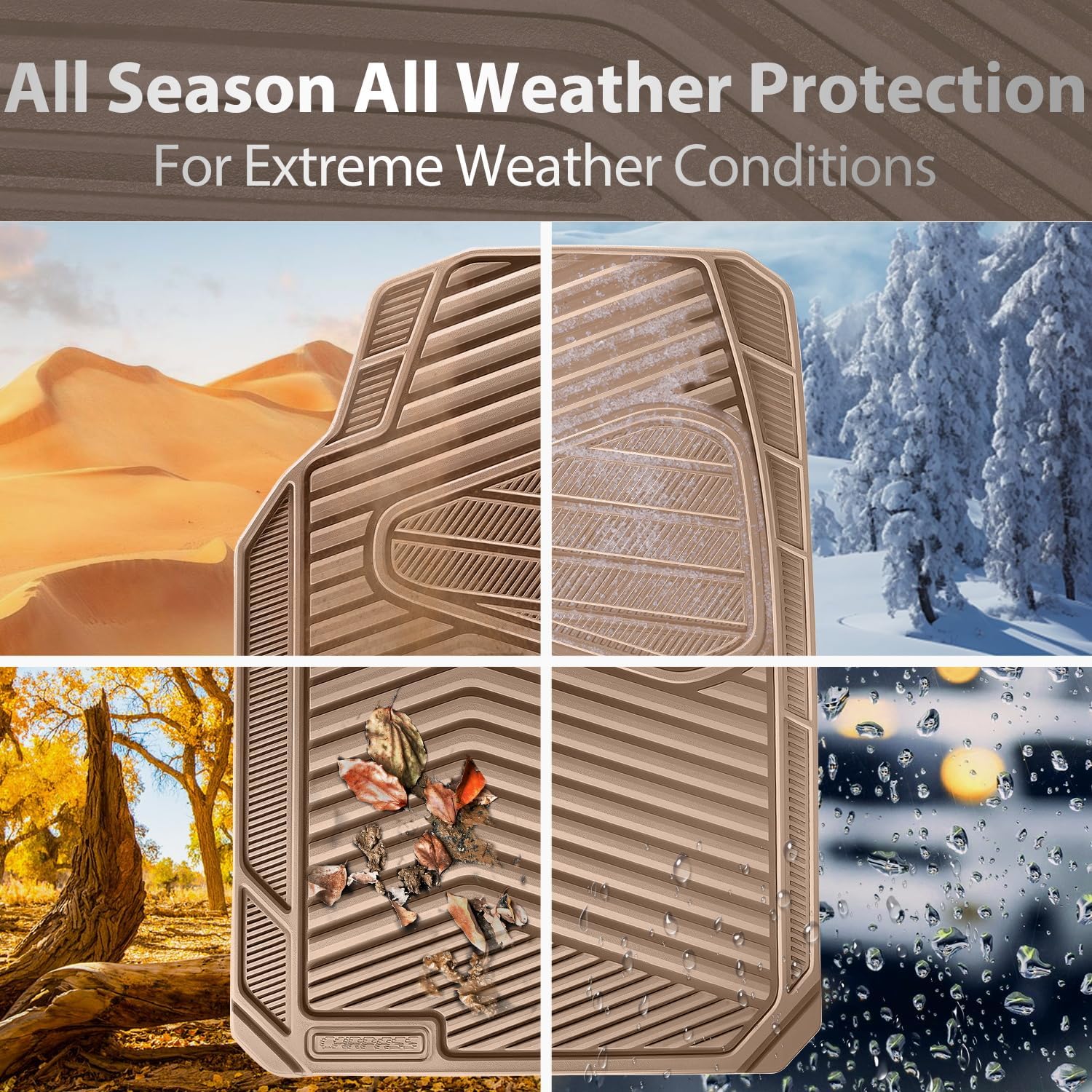 - HEAVY DUTY RUBBER ALL WEATHER FLOOR MATS: CAR PASS all beige heavy duty rubber car mats use for all season.Easy to clean. Made with FlexTough polymers that resist cracking and warping. These tan rubber car mats stay flexible yet strong in extreme temps.specifically design to prevent fluids from leaking onto carpets,the beige automotive floor mats also trap any mud, dirt, water or snow that gets in your car, Ideal for beige car floor mats for cars, beige car floor mats for small trucks, and beige all weather car floor mats needs