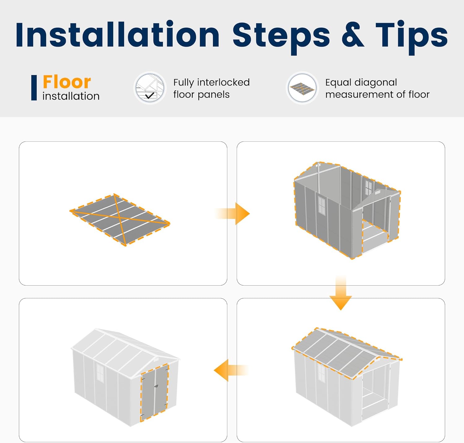 UDPATIO Storage Shed 8 x 10 FT, Resin Outdoor Garden Sheds with Floor Plastic Patio Outdoor Storage with Lockable Door for Tool, Bike, Garbage Gray White