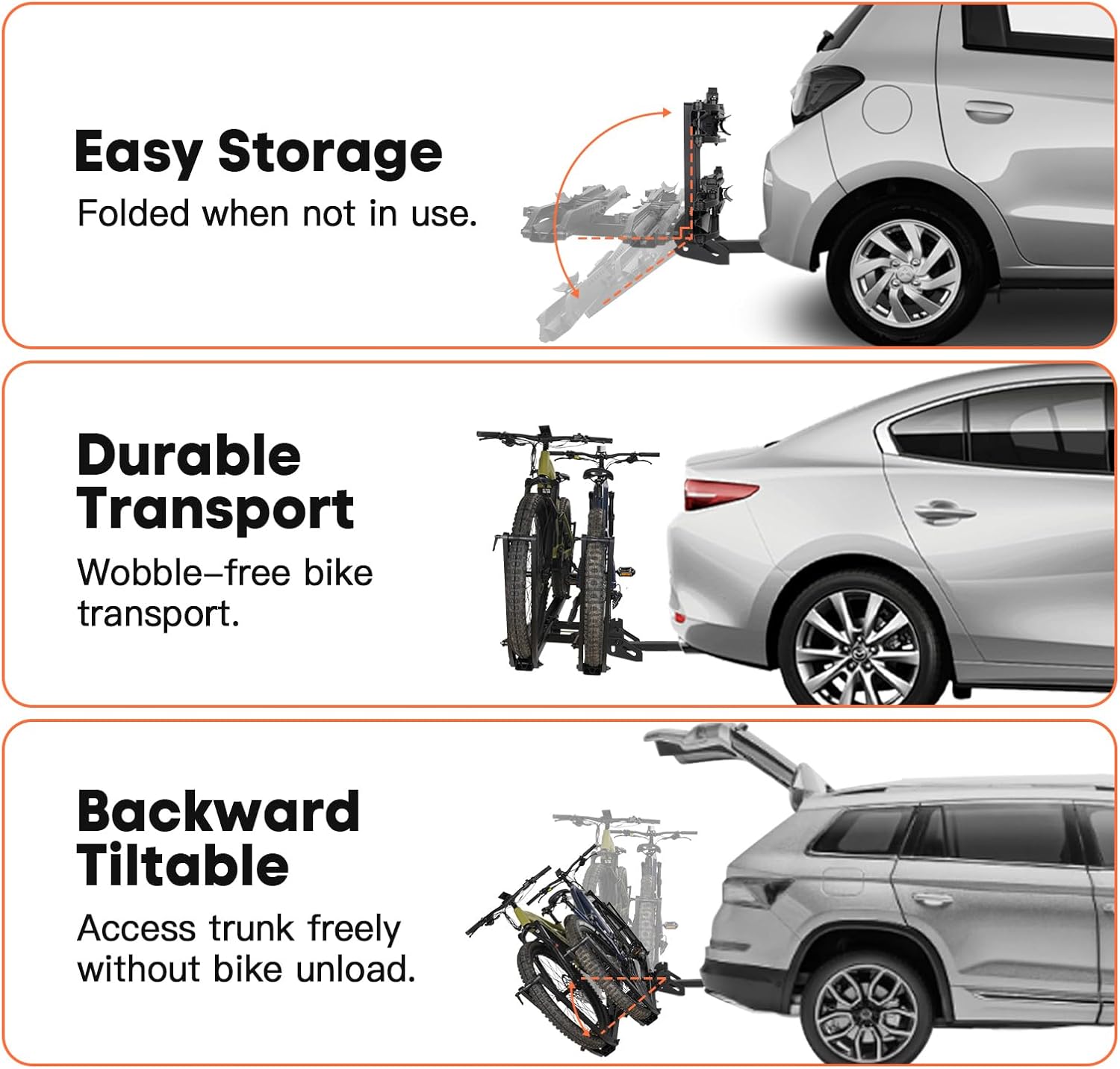 MagRack X2 Hitch 2 Ebike Rack, 150 lbs Capacity Electric Bike Carrier with 2 Arms, Foldable Bike Racks for Tow Hitch Up to 3.5-in Fat Tire 2" Receiver w/Lock