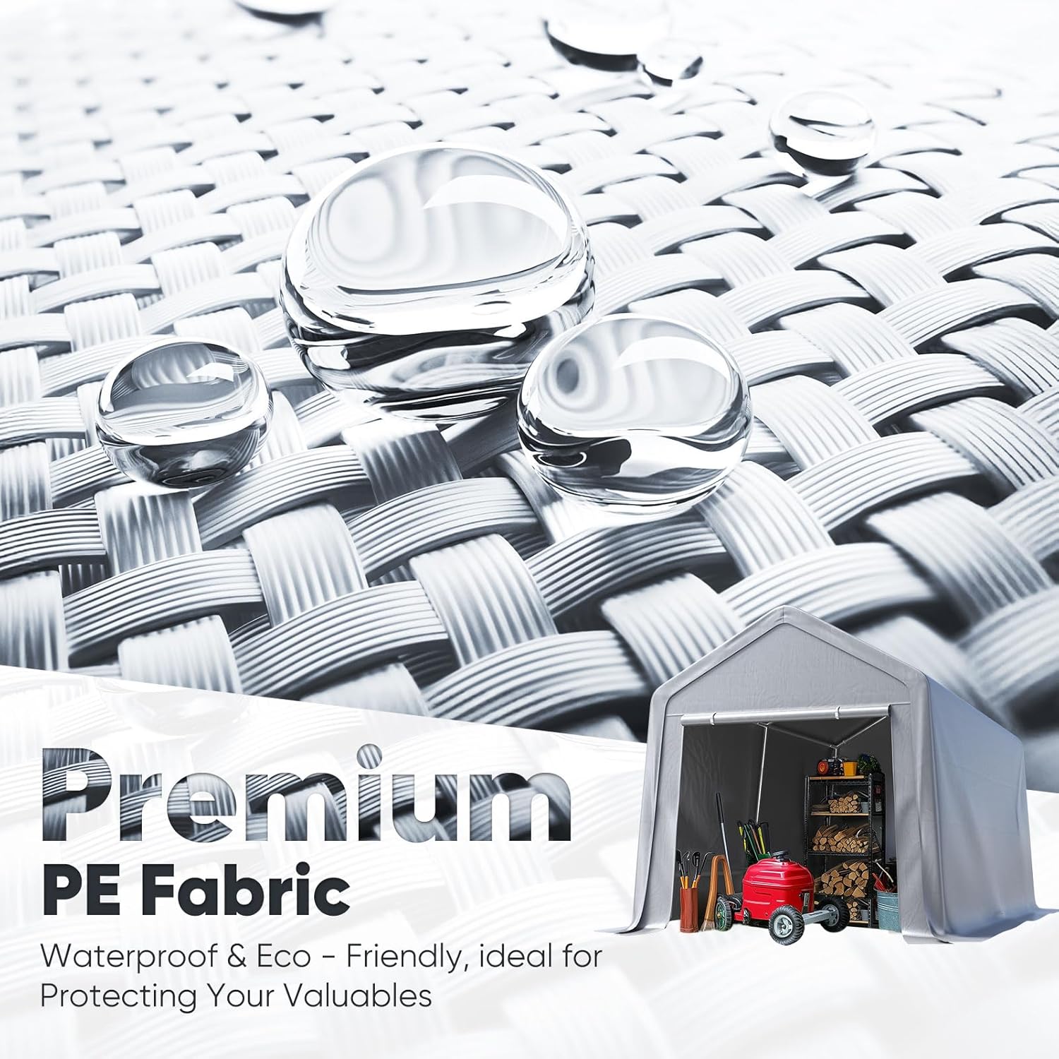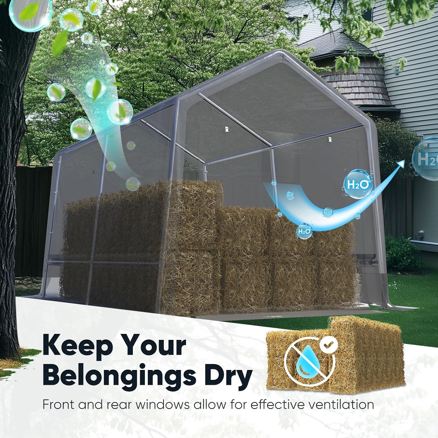 - 【Roll-up Ventilation Windows Design】1 mesh roll-up windows on door + ceiling airflow channel prevent condensation buildup. ideal for storage Lawn mower and other tools.