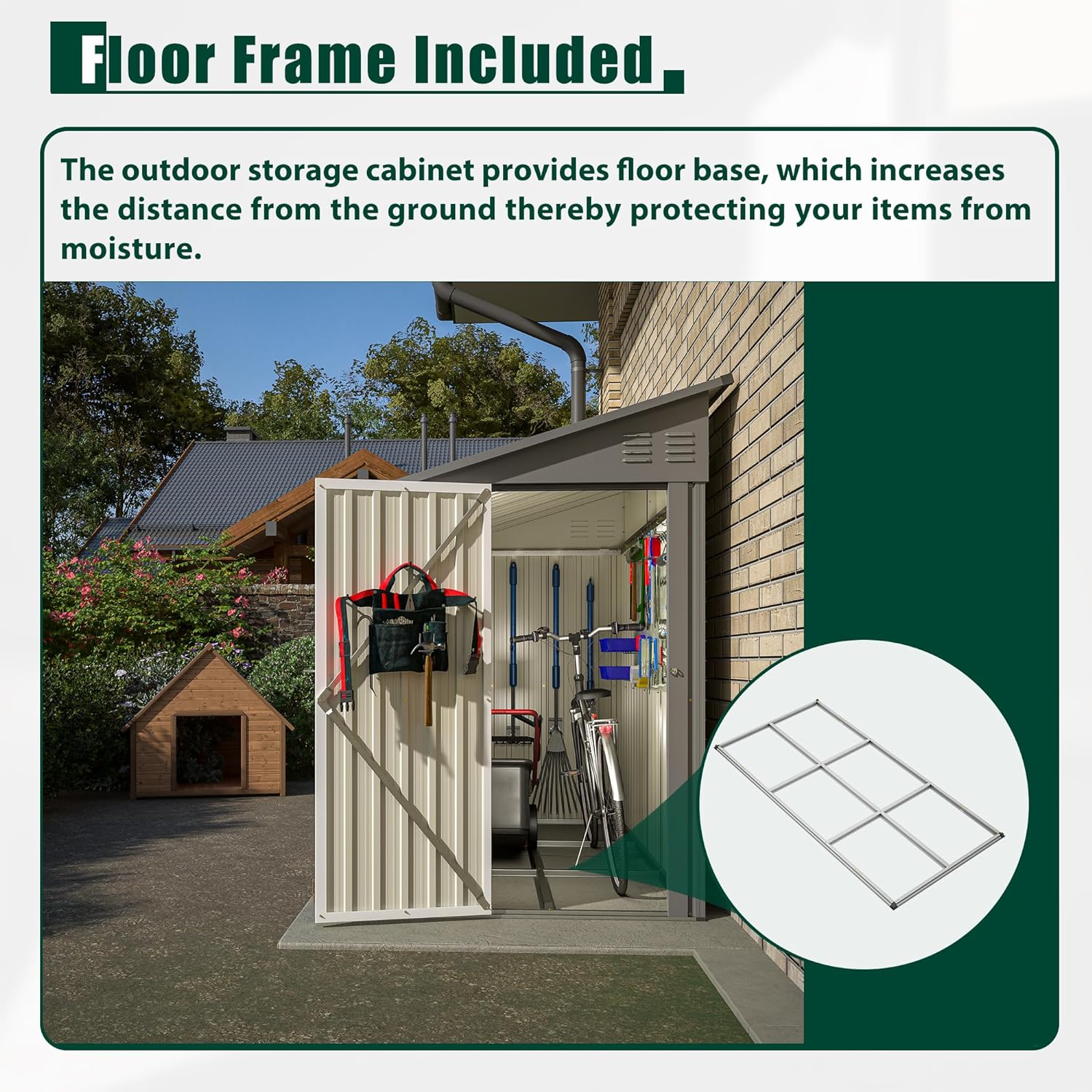 4x8 FT Outdoor Storage Shed,Lean to Metal Shed W/Floor Included,Garden Storage Shed W/Lockable Door,All Weather Waterproof Tool House W/ 2 Air Vents,for Backyard,Patio,Lawn,Garden,Gray
