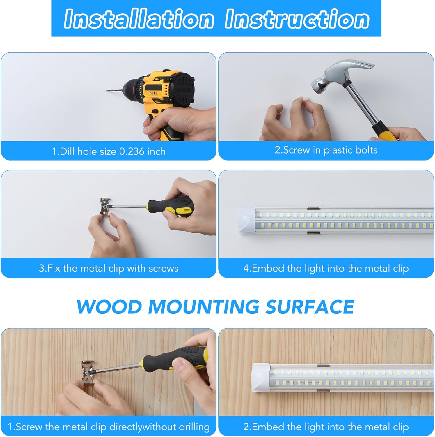 - [Ultra-Bright 270° V-Shape LED Shop Lights]Get commercial-grade brightness! Our 2FT LED lights feature 160LM/W & a 270° V-shape design for uniform, flicker-free daylight (6000-6500K). Perfect garage led lights or workshop led light fixture, illuminating every corner. Outshines fluorescents, slashes energy costs.