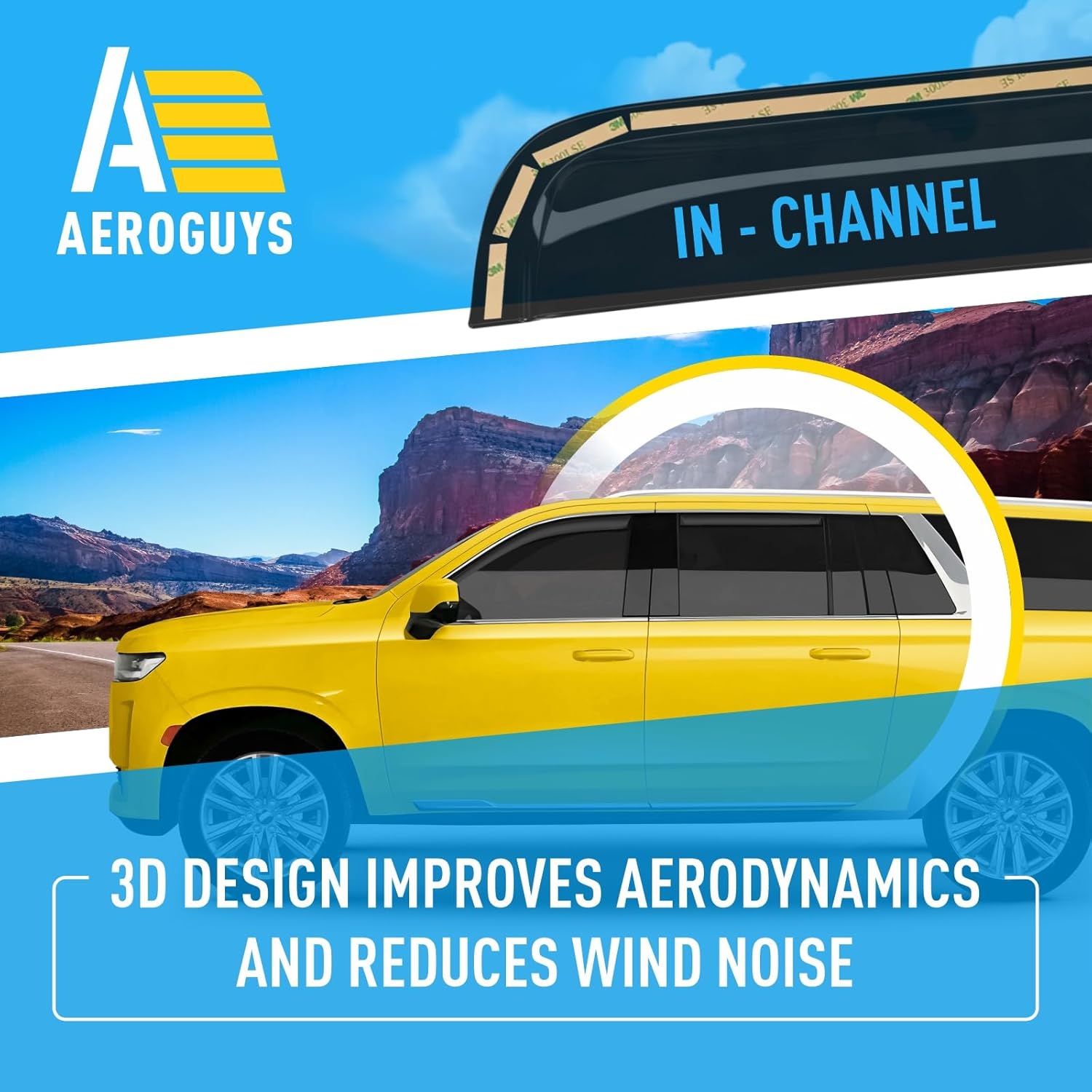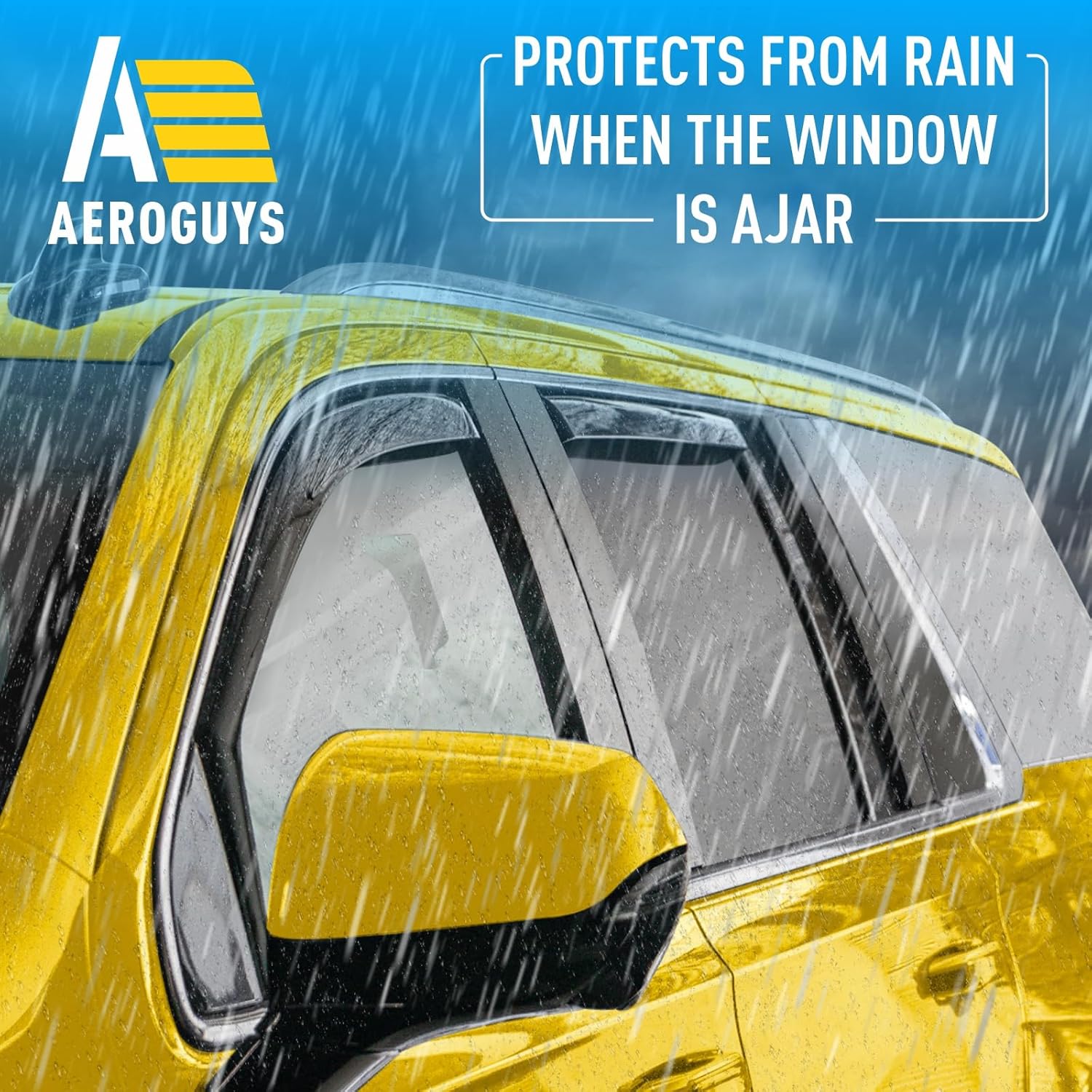 - Incredibly Durable AEROGUYS Auto Window Deflectors – They are made with strong and tough polycarbonate which is clear and scratch-resistant. They also provide UV protection making your ride more comfortable under all weather conditions.