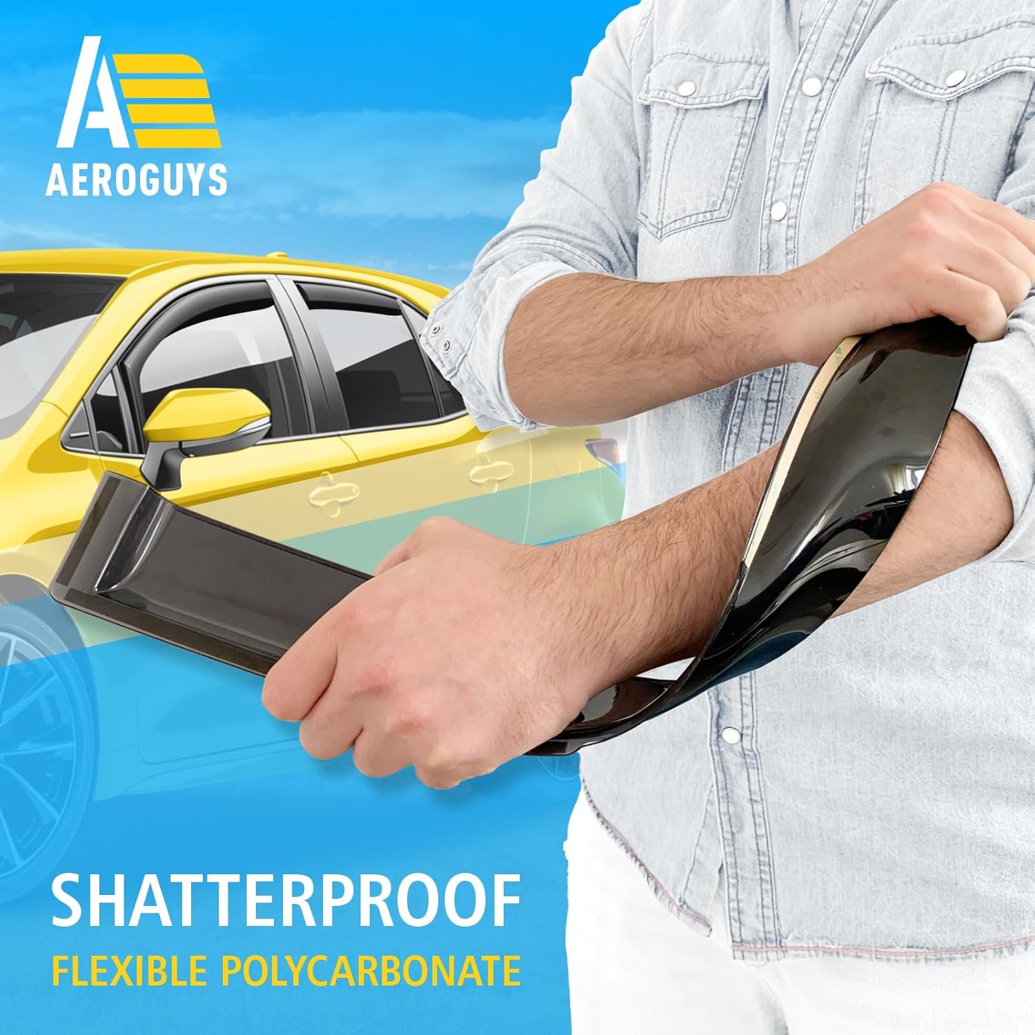 - Incredibly Durable AEROGUYS Auto Window Deflectors – They are made with strong and tough polycarbonate which is clear and scratch-resistant. They also provide UV protection making your ride more comfortable under all weather conditions.