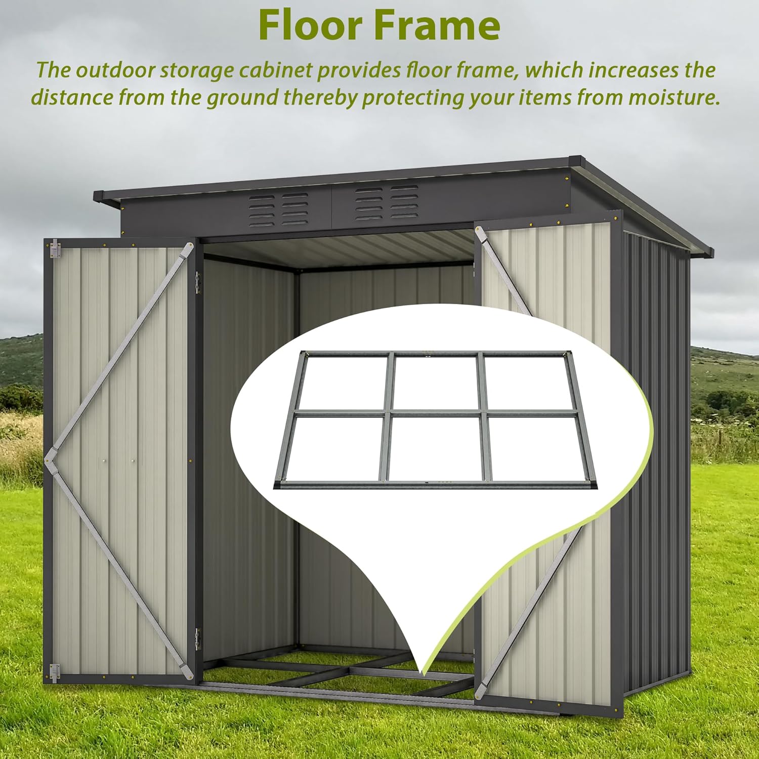 Outdoor Storage Shed, 6 X 4ft Metal Galvanized Steel Garden Shed with Floor Frame, Utility Tool Shed Storage House for Backyard, Patio, Lawn