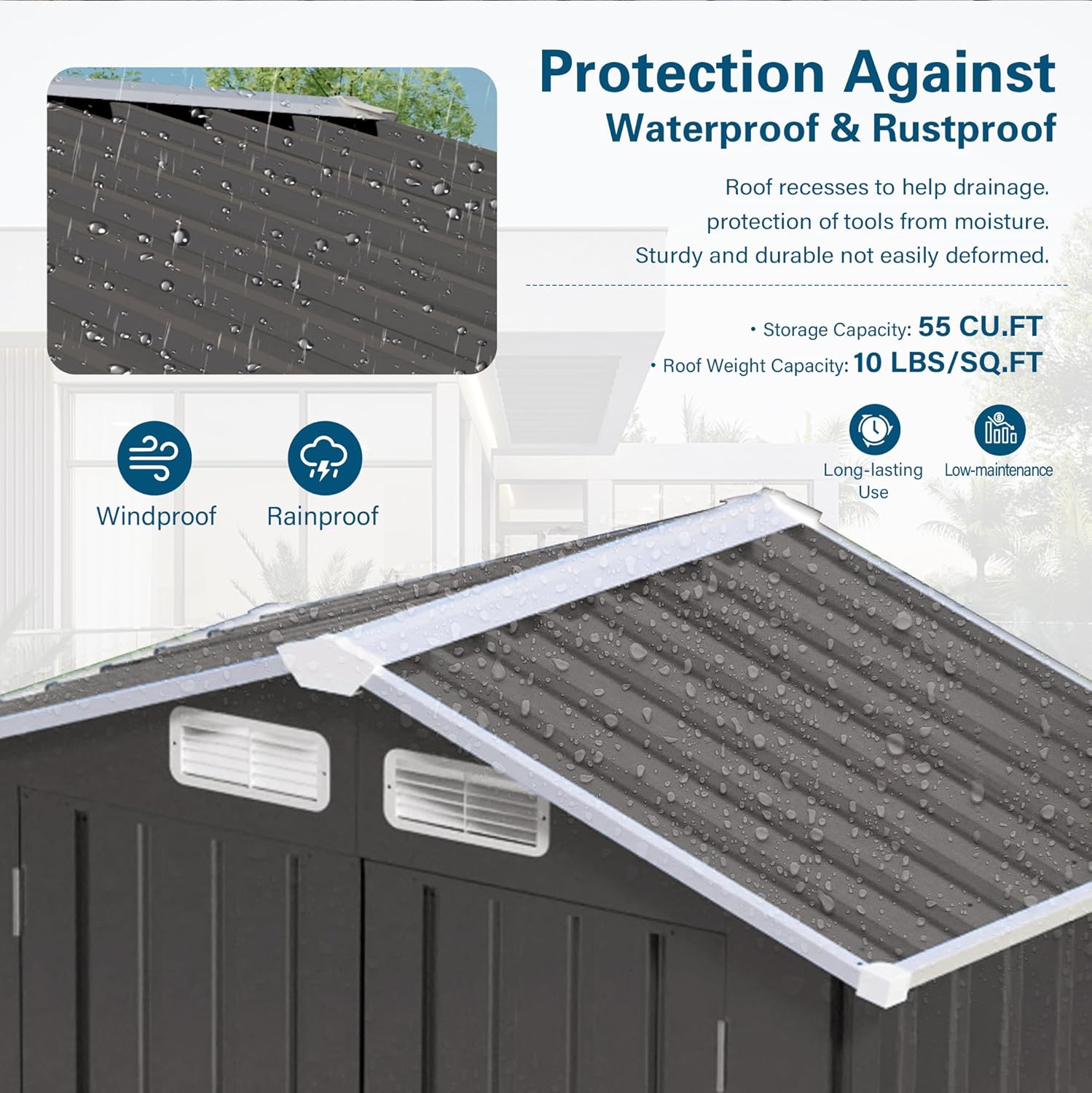 - 【Metal Material, Quality Selection】: Made of prepainted galvanized steel plate, it undergoes multiple anti-rust treatments. Equipped with a sealed waterproof roof and wind-resistant structure, compared with wooden or plastic storage sheds, metal material boasts have higher strength and durability. It is less prone to deformation, cracking, and fading, and requires less frequent maintenance. This will saves time and costs, it is a reliable choice for long-term outdoor storage.