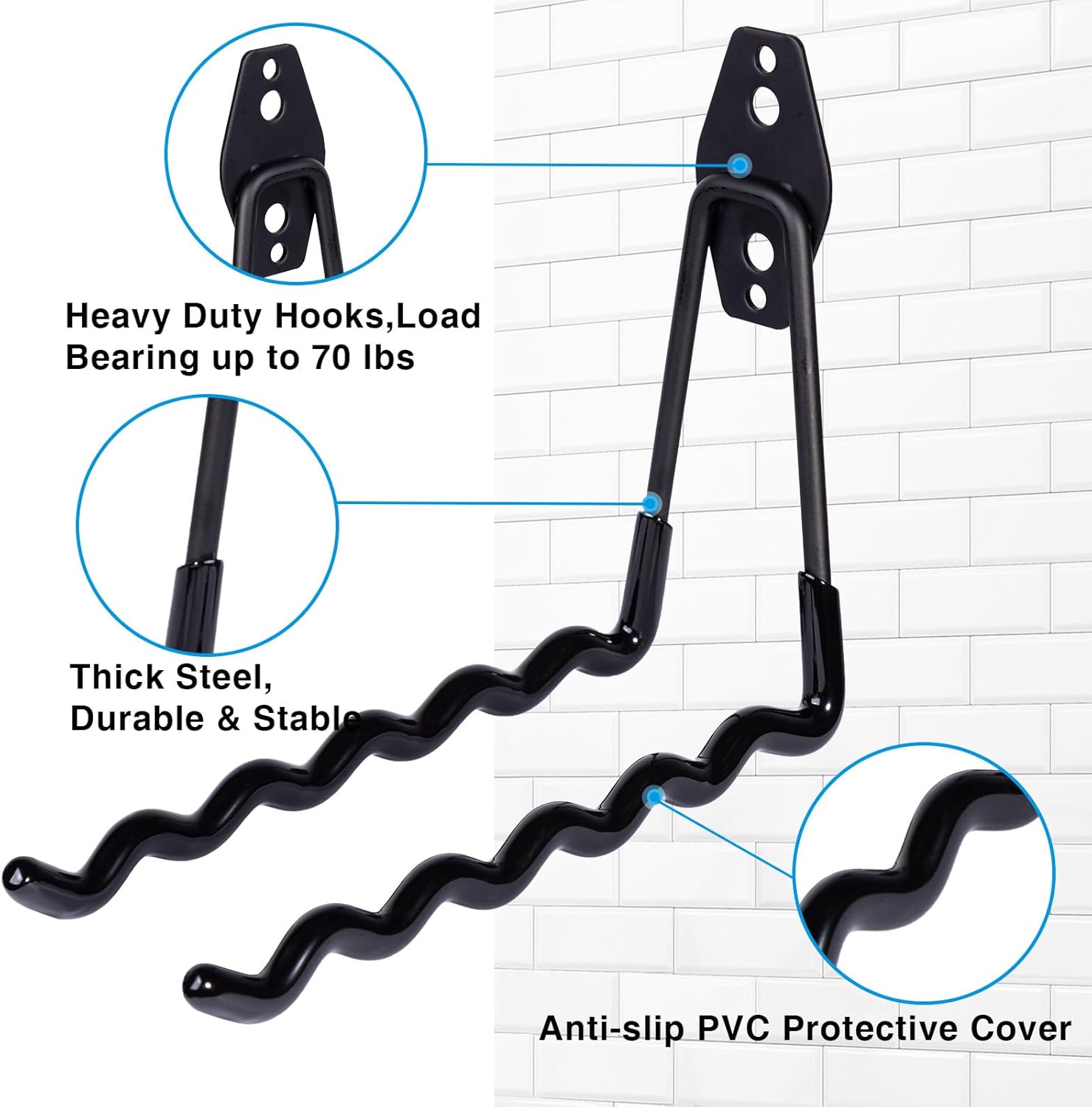 - ✅ Built to Last: Crafted from heavyweight iron with reinforced welds, these heavy-duty hooks are built for years of daily use. Confidently hang bikes, brooms, ladders, shovels, rakes, strollers, gym bags, and more—zero wobbling, bending, or sagging guaranteed!