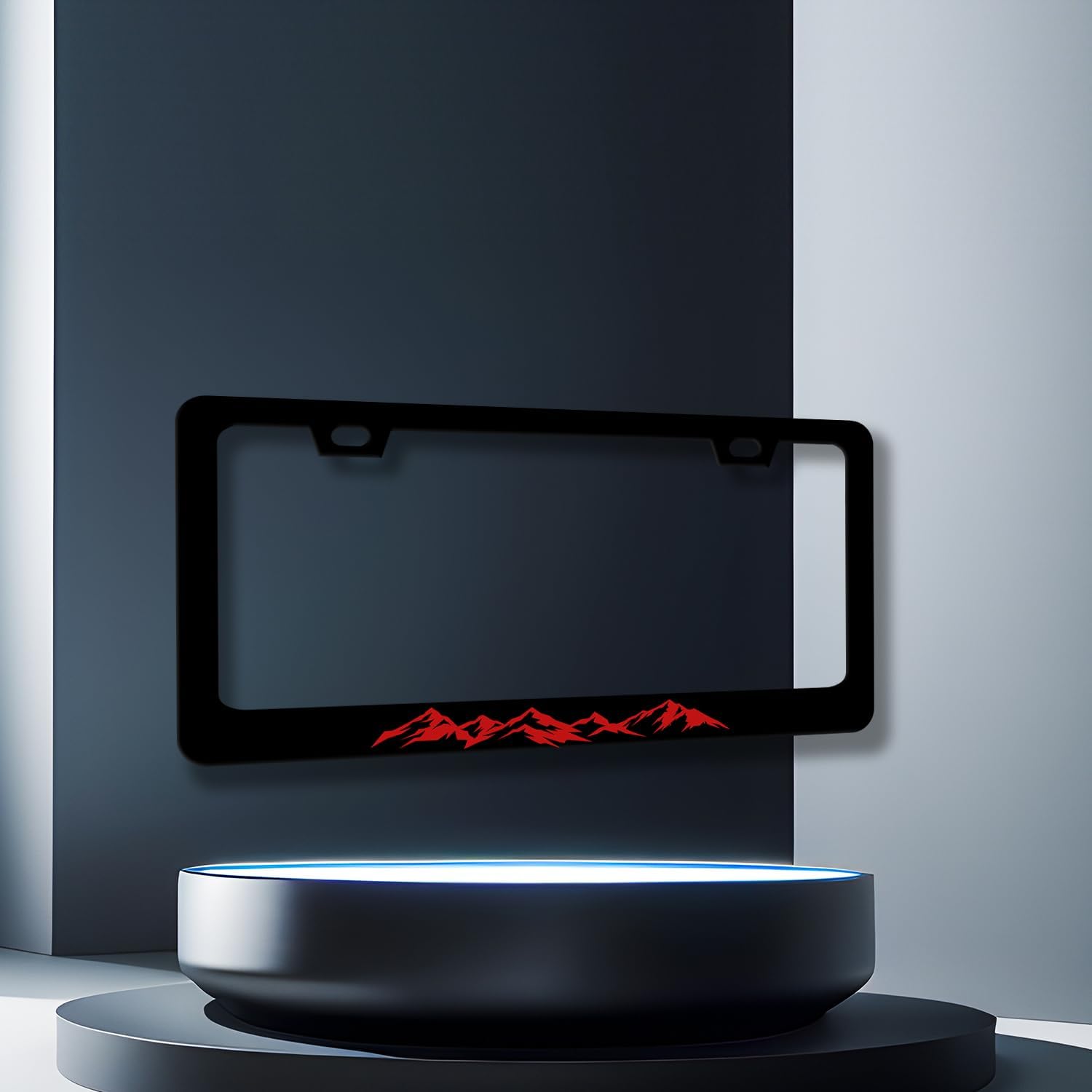 Mountain License Plate Frame Colorful Mountains License Plate Stainless Steel Funny Black Accessories Cars Decor 12.2 X 6.2 Inch with 2 Holes and Screws Fits Standard Us Ca Vehicles