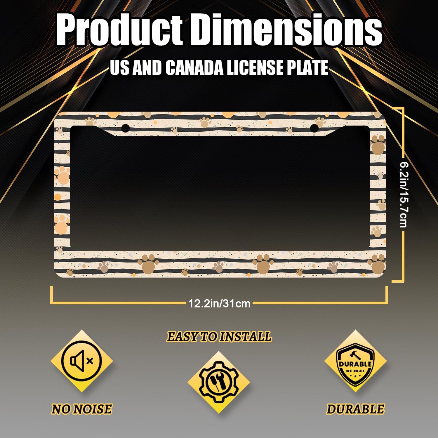 Vintage Dog Paws Prints License Plate Frame Animal License Plate Stainless Steel Dog Colorful Accessories Cars Decor 12.2 X 6.2 Inch with 2 Holes and Screws Fits Standard Us Ca Vehicles