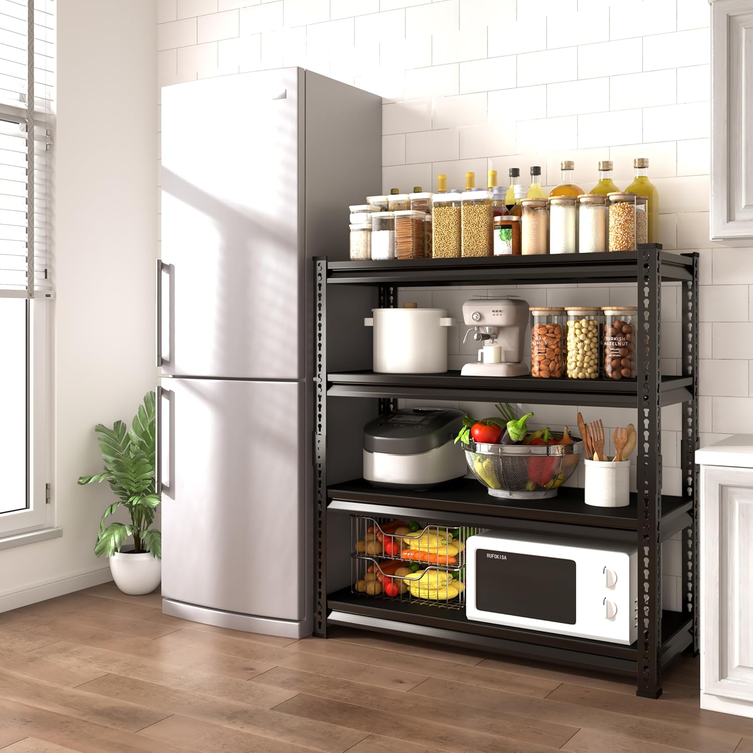 - 【2000 lbs Load Capacity】The 4-tier garage shelves is definitely an upgrade from the traditional wire shelves of the past.All metal shelves with the bracing ribs complete the unit with 2000 lbs bearing capacity for organizing heavier items or breeder tanks.