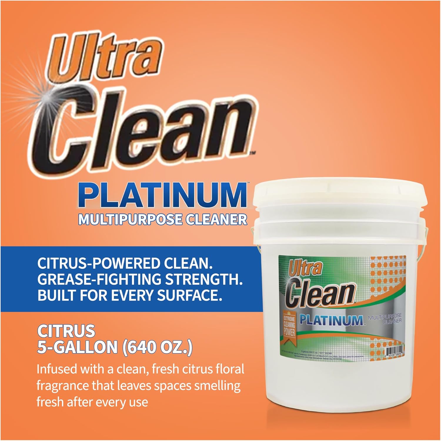 Ultra Clean Platinum Multipurpose Cleaner, Non-Abrasive and Bleach-Free, for Kitchen Counters, Bathroom Floors and Garage Spaces, Citrus, 5 Gallons