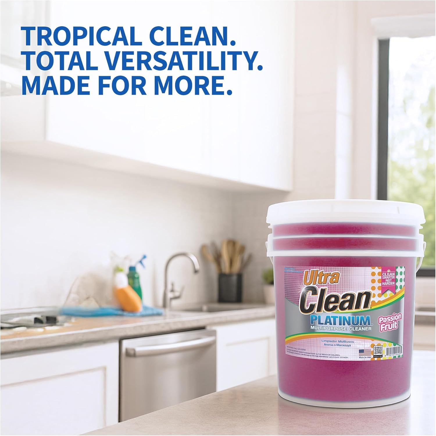 Ultra Clean Platinum Multipurpose Cleaner, Non-Abrasive and Bleach-Free, for Kitchen Counters, Bathroom Floors and Garage Spaces, Passion Fruit, 5 Gal