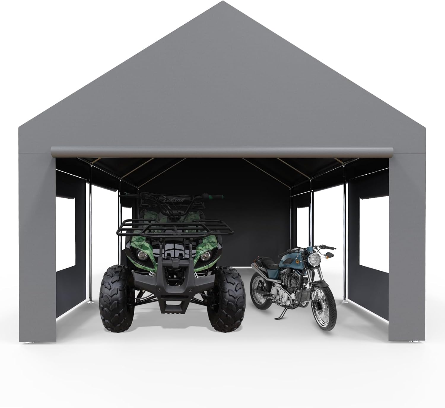 - HIGH QUALITY FRAME: Built with rust-proof galvanized steel pillars, this portable heavy duty carport won’t sag or wobble. It shelters cars, trucks, boats (up to 13 X 20 FT) and doubles as a party pavilion
