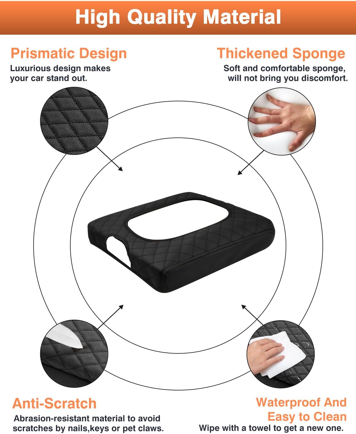 - 【Great Protection for Console】: A must-have Console Cushion for Sierra armrest. The Sierra center console cover gives full protection to your car armrest box from spills, scuffs, dirt, pet claws and sticky fingers. This Silverado console cover can protect the tops and sides of the console and hide the ugly tear in the leather.