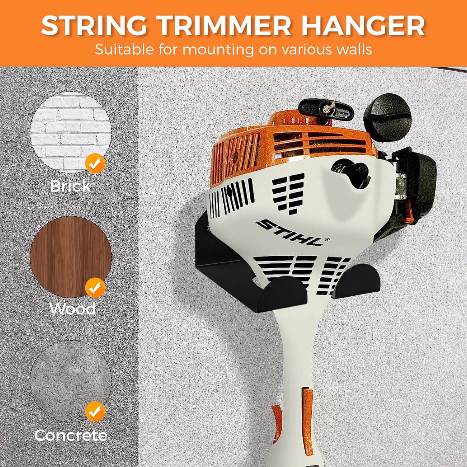 - Multi-purpose: Not only suitable for common gardening tools (such as lawn mowers, chainsaws, shovels, etc.), but also can be used to hang other items, such as bicycles, garden hoses, mops, brooms and other household necessities.The product is compatible with Stihl weed eater and other brands of small weed eater. (Some large weed eater are not well compatible, depending on the size.)