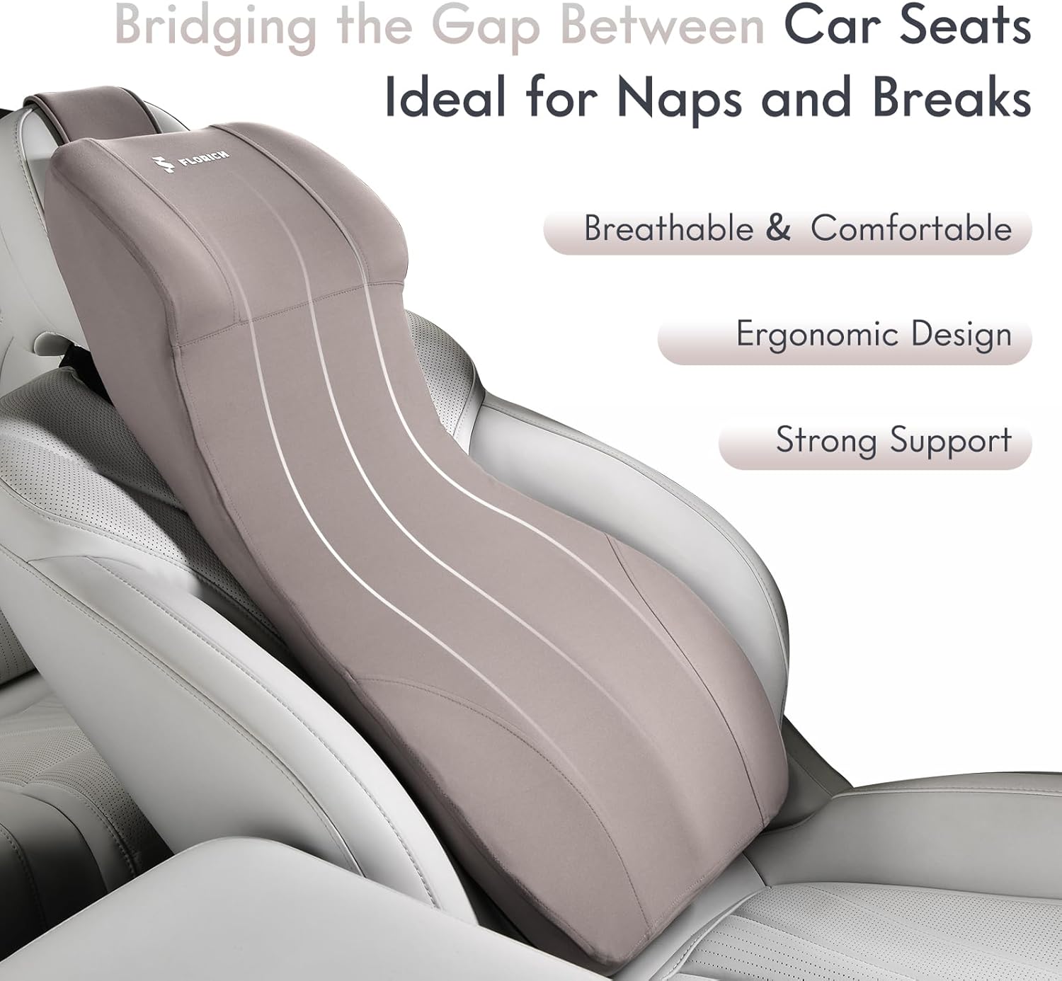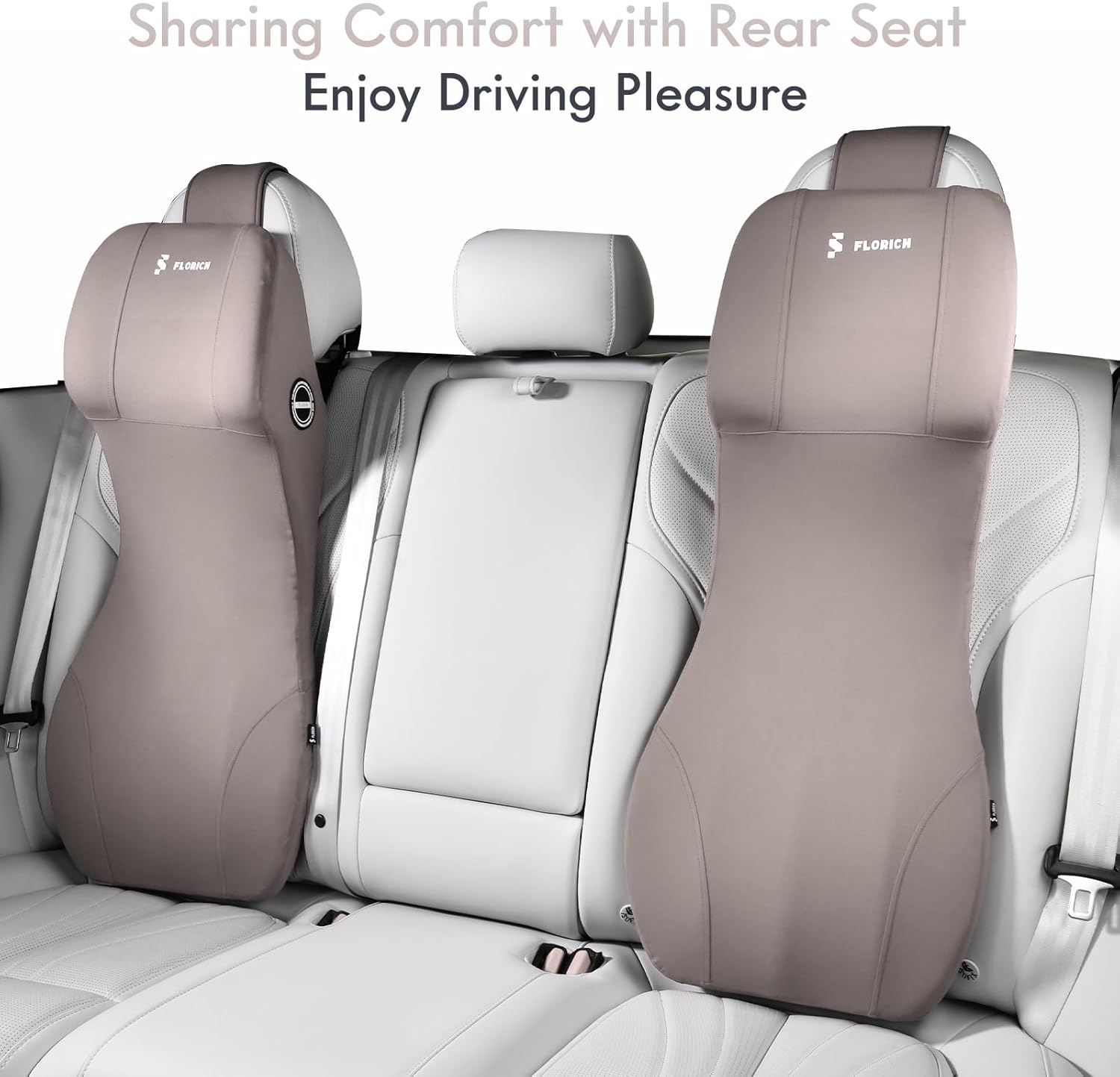 FLORICH Lumbar Support Pillow and Car Neck Pillow Memory Foam Integrated Lumbar Support Cushion with Headrest Pillow Ergonomic Car Seat Back Support for Head Waist Support Sciatica Pain Relief, Gray
