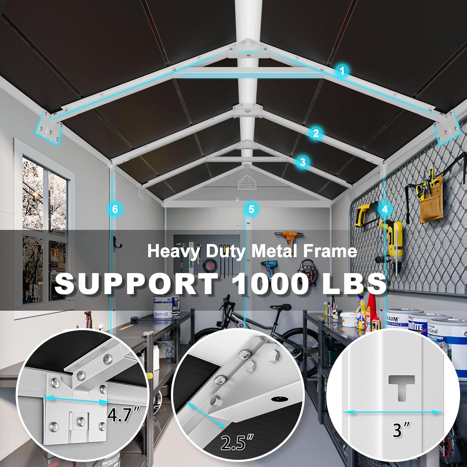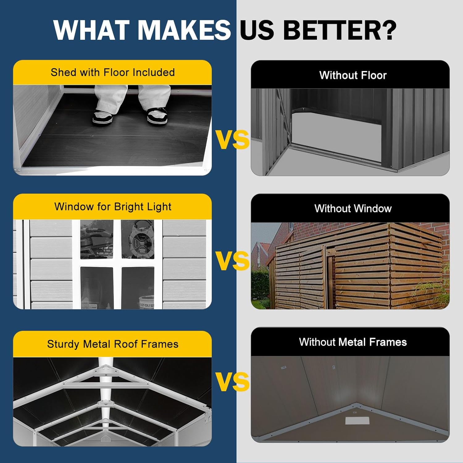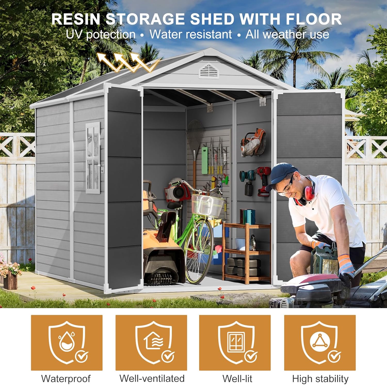 - 【Durable Construction with Floor&Window】 Made from extra thick double walled polypropylene resin construction & steel is durable enough to resist adverse weather. And the impact resistant floor is insulated from rain and insects, making the outdoor shed with floor corrosion resistant, moisture proof, and more resistant to wind and impact, ensuring that your stored items remain intact in the severe weather