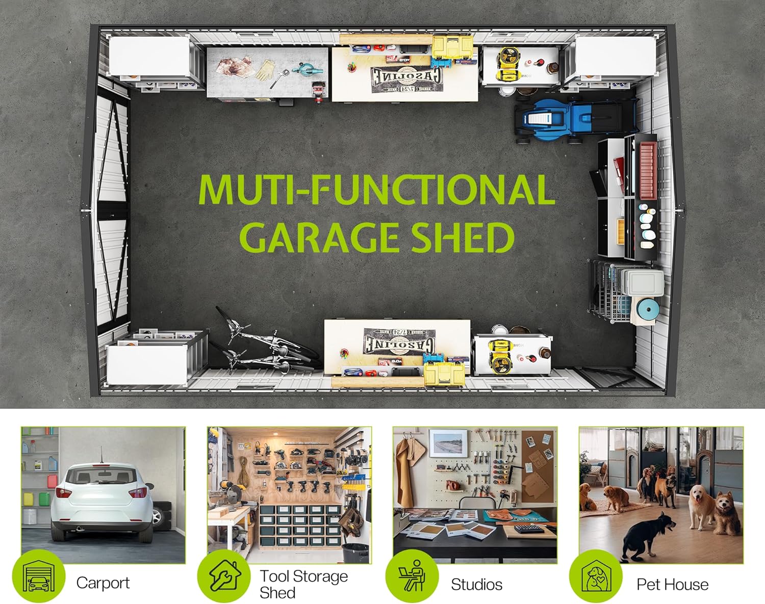 - Spacious Design: Measuring 13.2x20.7x8.4 FT, this metal garage offers 1800 Cu.ft space to protect your vehicles, RVs, or outdoor equipment from the elements, ensuring they stay safe and dry