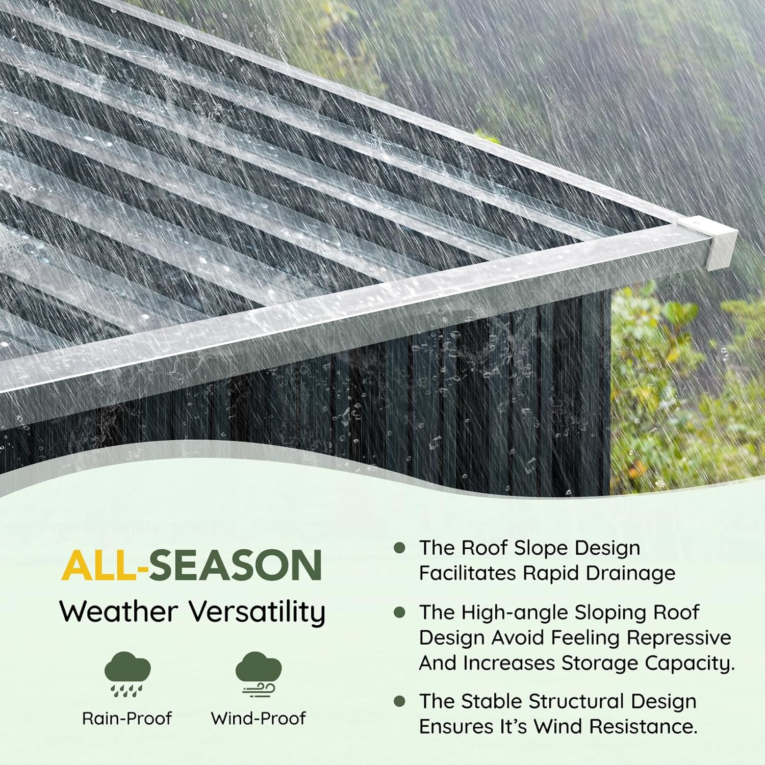 - Weather-Resistant Steel Construction – Made with galvanized steel panels that resist rust, corrosion, and UV damage, ensuring long-lasting durability in all weather conditions.
