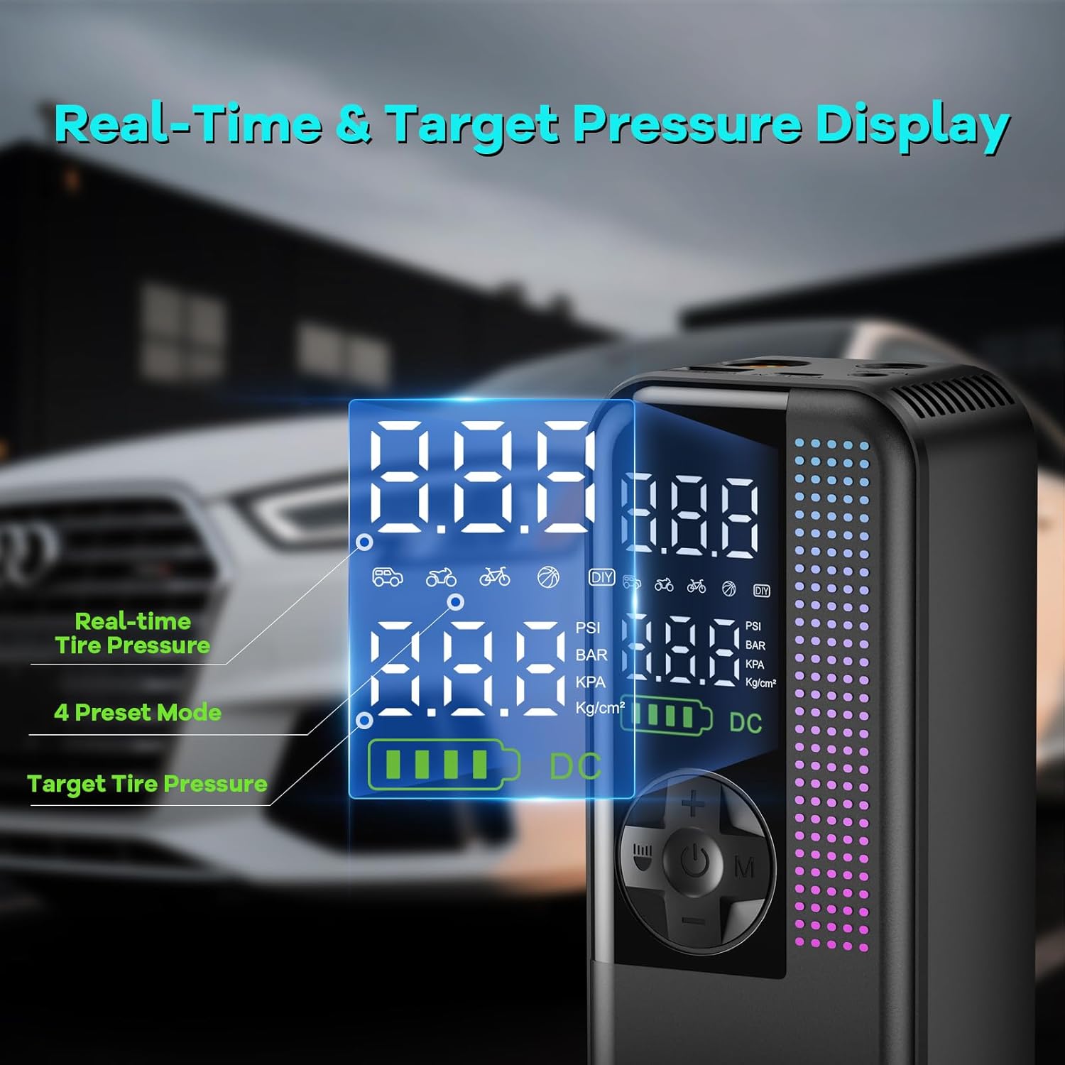 - Know Your Pressure, Exactly When It Matters: Our digital pressure gauge delivers precise, real-time readings with ±1 PSI accuracy — always slightly on the safe side. Why? Because we’ve fine-tuned the calibration with a positive tolerance, so when you disconnect the valve and lose that tiny puff of air, your tire still lands right on target