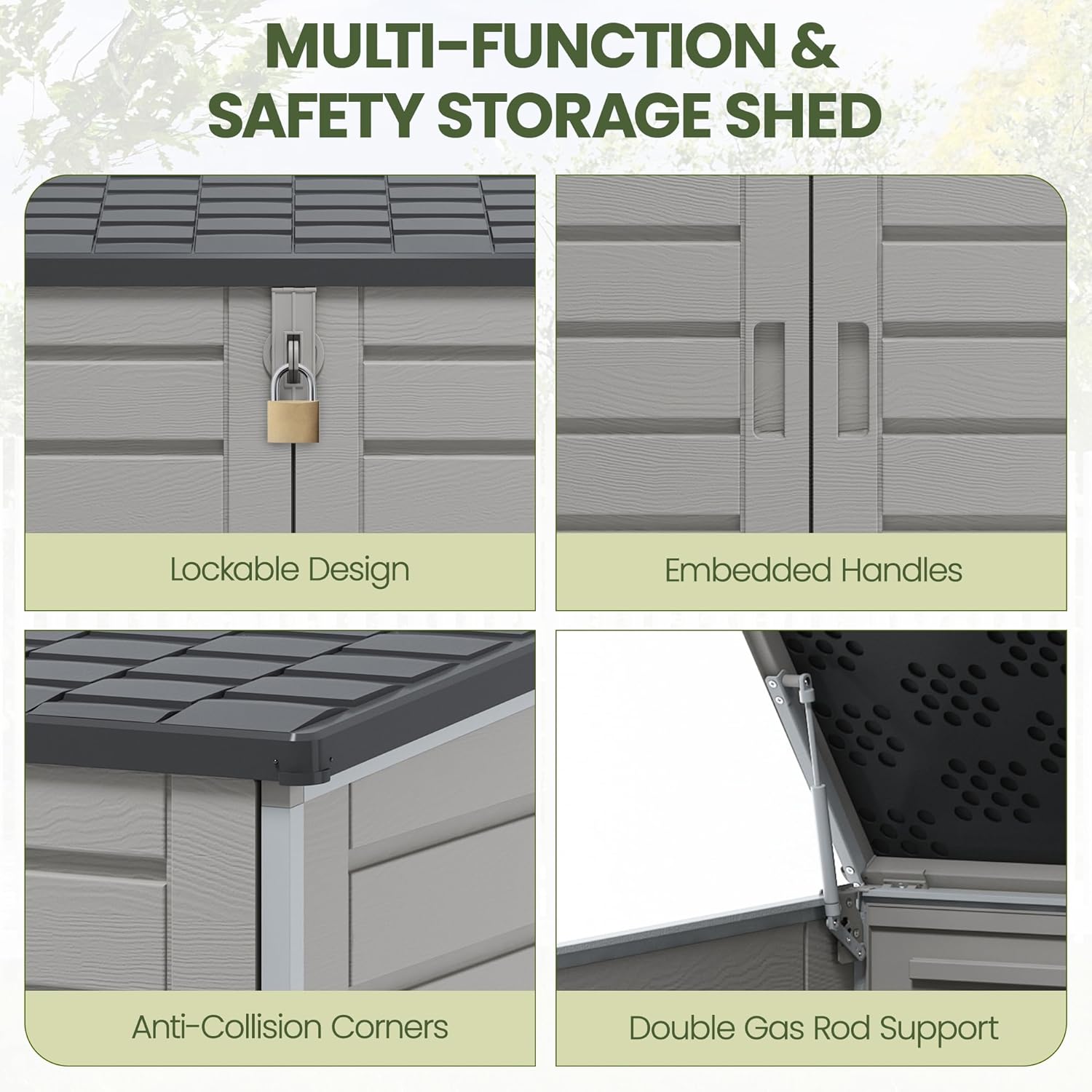 - Durable Resin Construction: This outdoor storage shed is made from premium resin using advanced thermoforming technology, giving it a lightweight appearance while maintaining exceptional flexibility and strength. Once assembled, the shed remains sturdy over long-term use, resisting fading, peeling, or cracking. Its robust design ensures reliable outdoor storage in all weather conditions