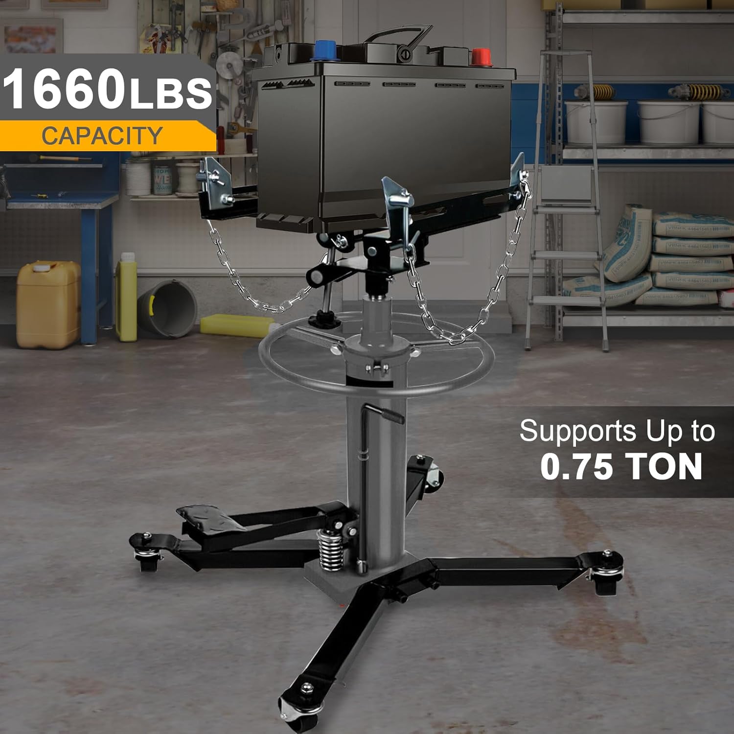 Transmission Jack 1660 lbs/ 0.75 Ton Capacity Hydraulic Telescopic Transmission Jack 34" - 70" Adjustable Height Telescoping Transmission Hydraulic with 360° Swivel Wheels Lift Hoist (Gray)