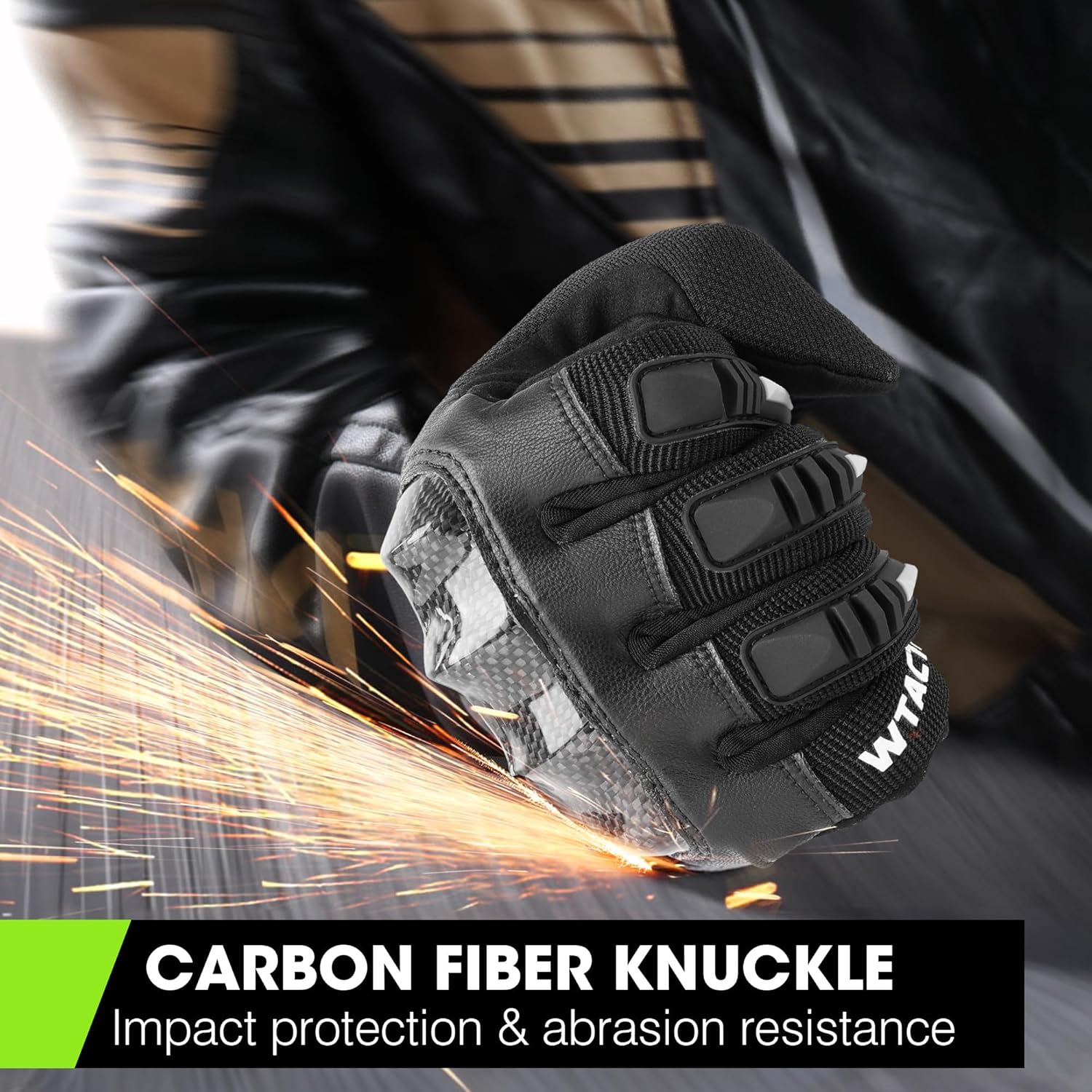 - Protective Carbon Fiber Hard Knuckle Motorcycle Gloves: Features a lightweight carbon fiber knuckle shell for impact protection, with color-matched rubber strips on fingers for added safety and style. Available in three versatile colors: classic all-black, sporty black/white, and high-visibility fluorescent green for enhanced safety.