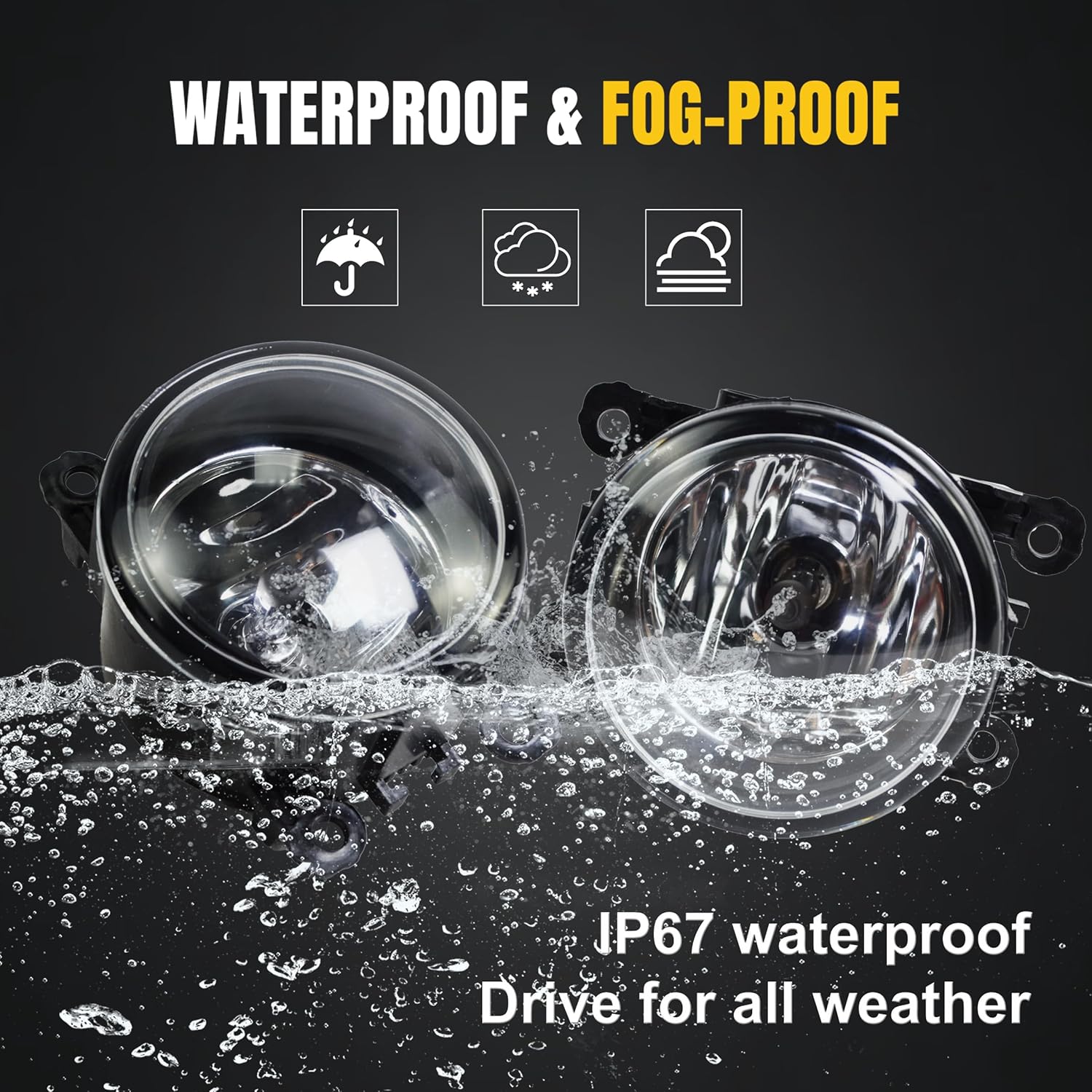 - 【Waterproof】 Our fog lights areIP65-rated waterproof fog lights feature a fully sealed, dustproof and corrosion-resistant housing with ventilation holes to prevent moisture intrusion while regulating temperature - ensuring long-lasting clarity and optimal performance in all conditions.