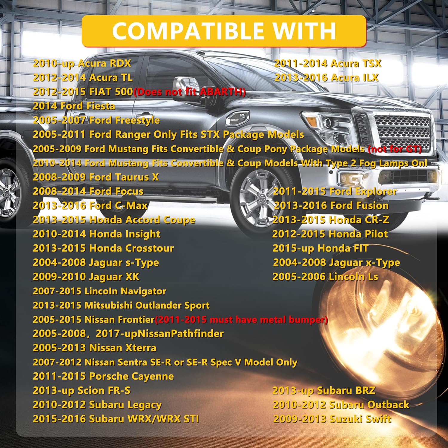 - 【Package Includes】2 x Fog Light/Four screws, four parts and 2 x H11 Bulb.(NOTE: the wiring harness is not included and professional installation is highly recommended)