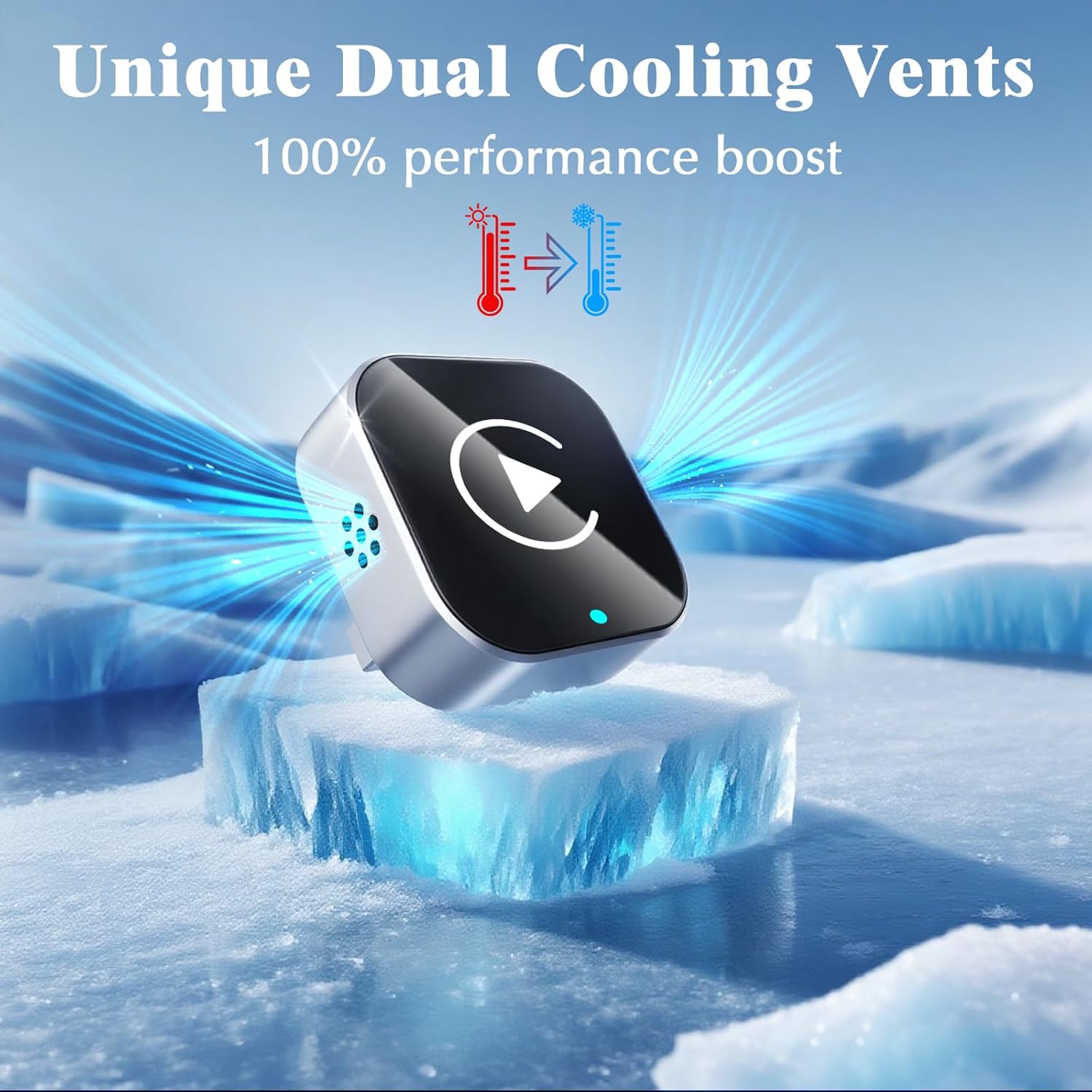 - đăStable, High-Speed ConnectionăEquipped with 2.4GHz + 5.8GHz dual-band chipset, this wireless Car Play adapter delivers up to 100% improved performance, ensuring a stable connection and ultra-low latency during daily use. Enjoy high-definition calls, seamless map navigation, and instant response timesâoffering the same reliability as a wired connection, but without the wires.