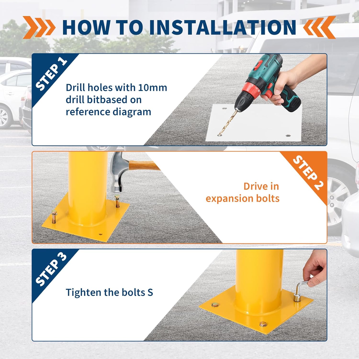 - Straightforward Setup: Installing this bollard post is simple.Just position, drill holes, insert the included anchor bolts, and tighten – no complex assembly required.