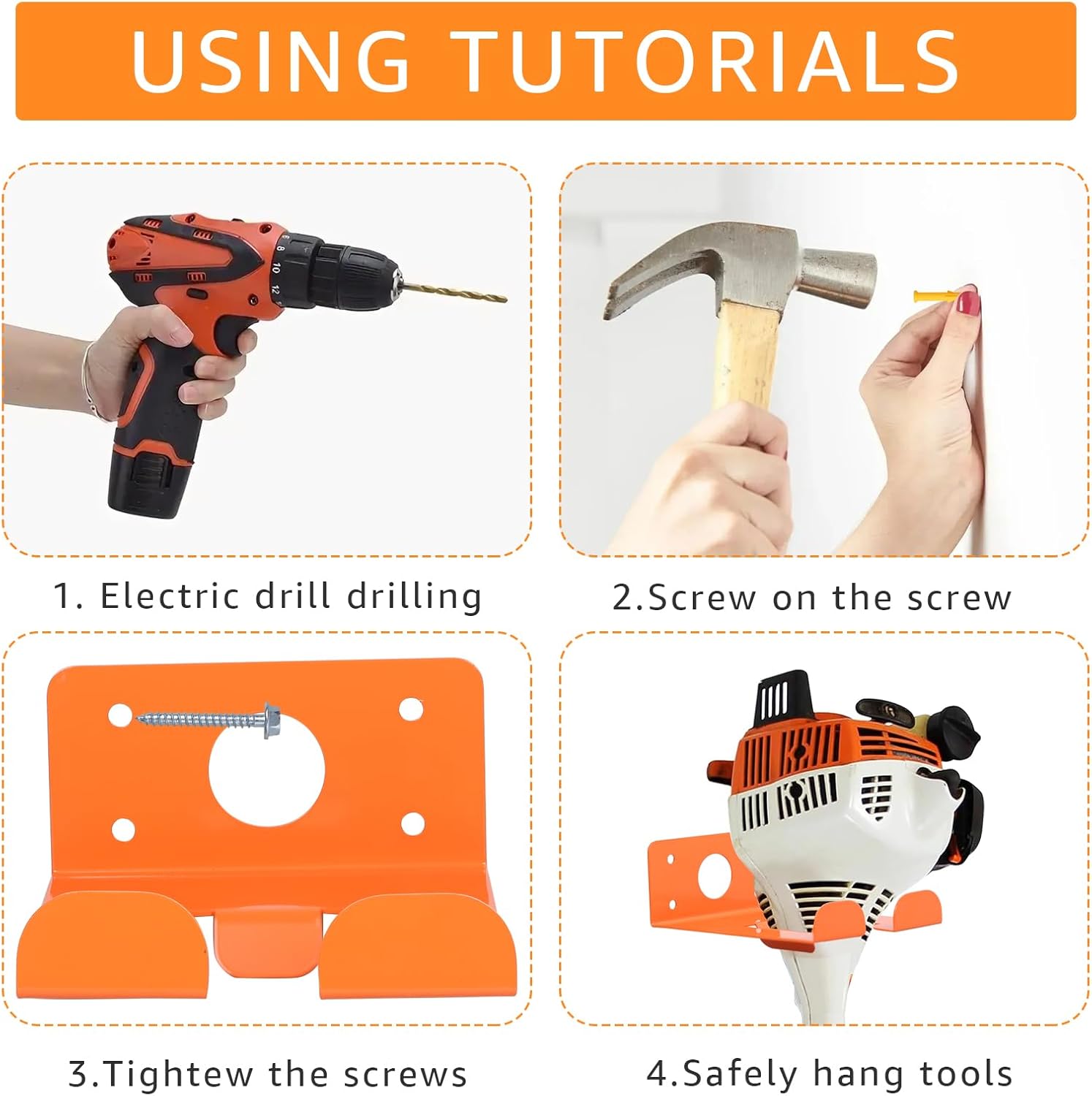 - HEAVY DUTY MULTI-TOOL ORGANIZER: Securely store weed whackers, chain saws, backpack blowers and gardening tools. Our Weeder Hanger, Pruning Rack is made stronger by thickened steel with 300LB capacity, perfect for garage/shed/workshop organization. The surface is coated with rust-resistant orange coating to prevent weather damage, rust and cracking