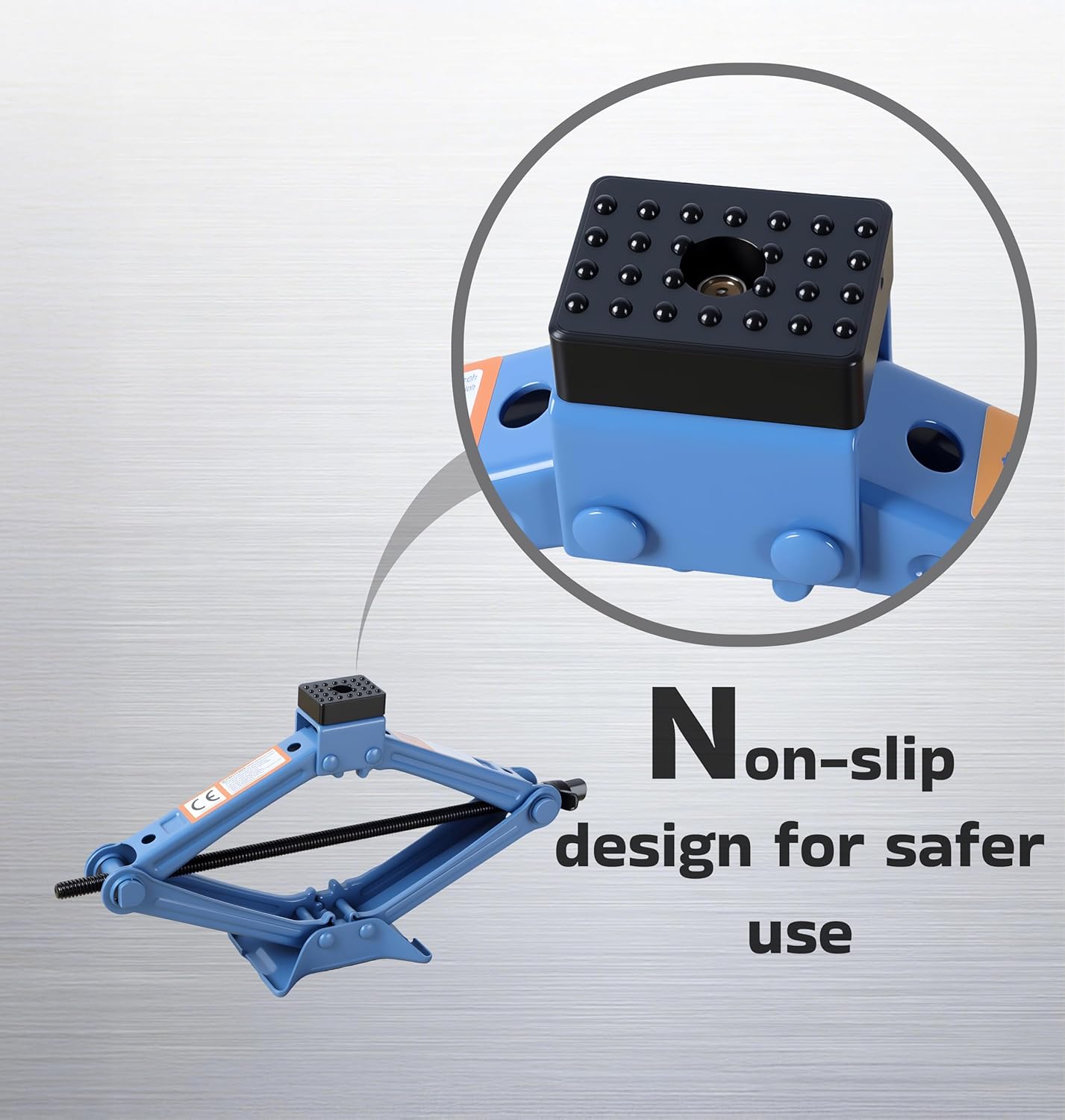 - 【Stable and Safe】LARBANKE car jack is made of Q345 steel plate, strong and durable, the top concave-convex non-slip design makes the user safer to use and will not damage the vehicle. The telescopic wrench handle has a non-slip design and is equipped with non-slip gloves, which saves the user's effort when using it.