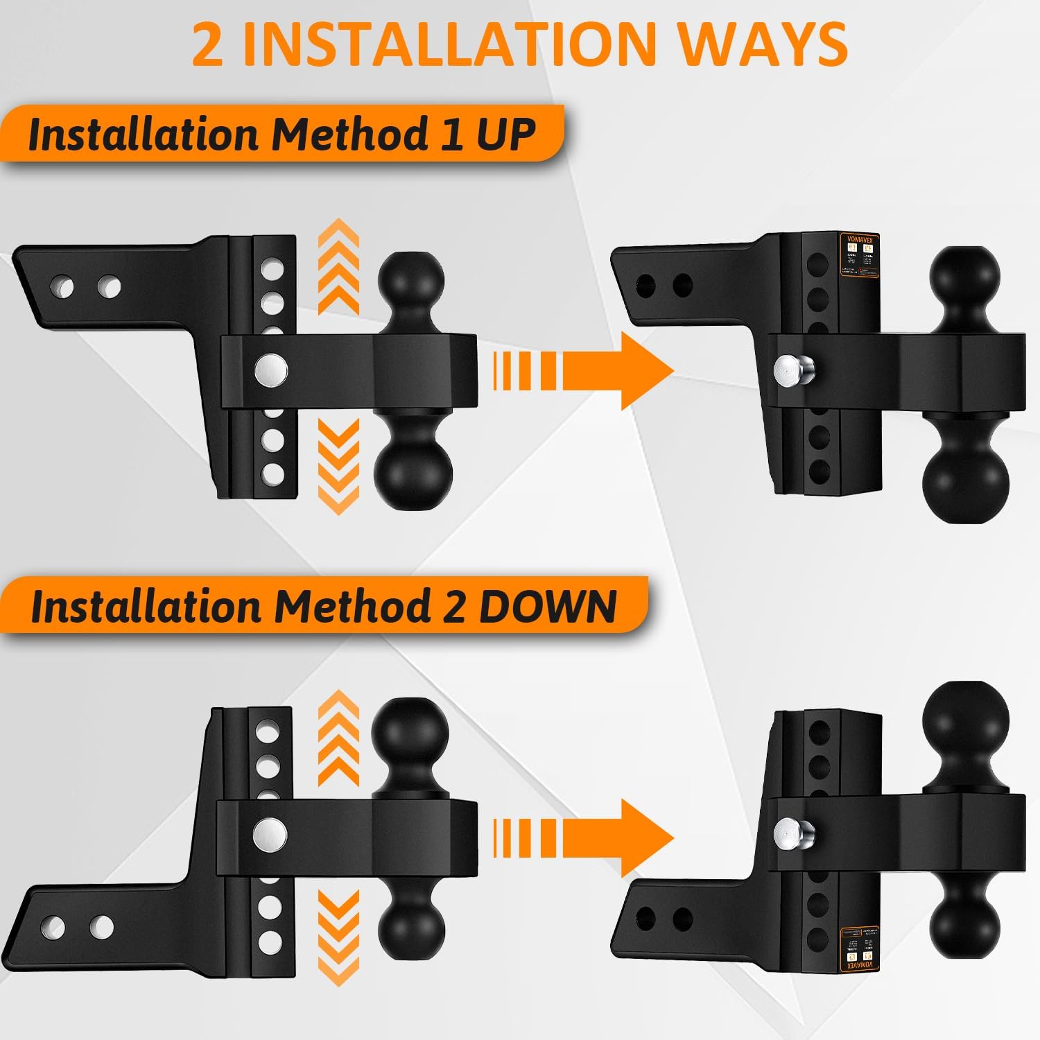 - ăFLEXIBLE ADJUSTABILITY ă--The 6â adjustable ball mount is a standout feature of this hitch. Its ability to drop or rise in 1â increments provides the perfect fit for trailers of different heights. No more hassle of swapping hitches for different vehicles or trailers. you can easily adjust the height to achieve a level towing setup, ensuring a smooth and stable ride every time.