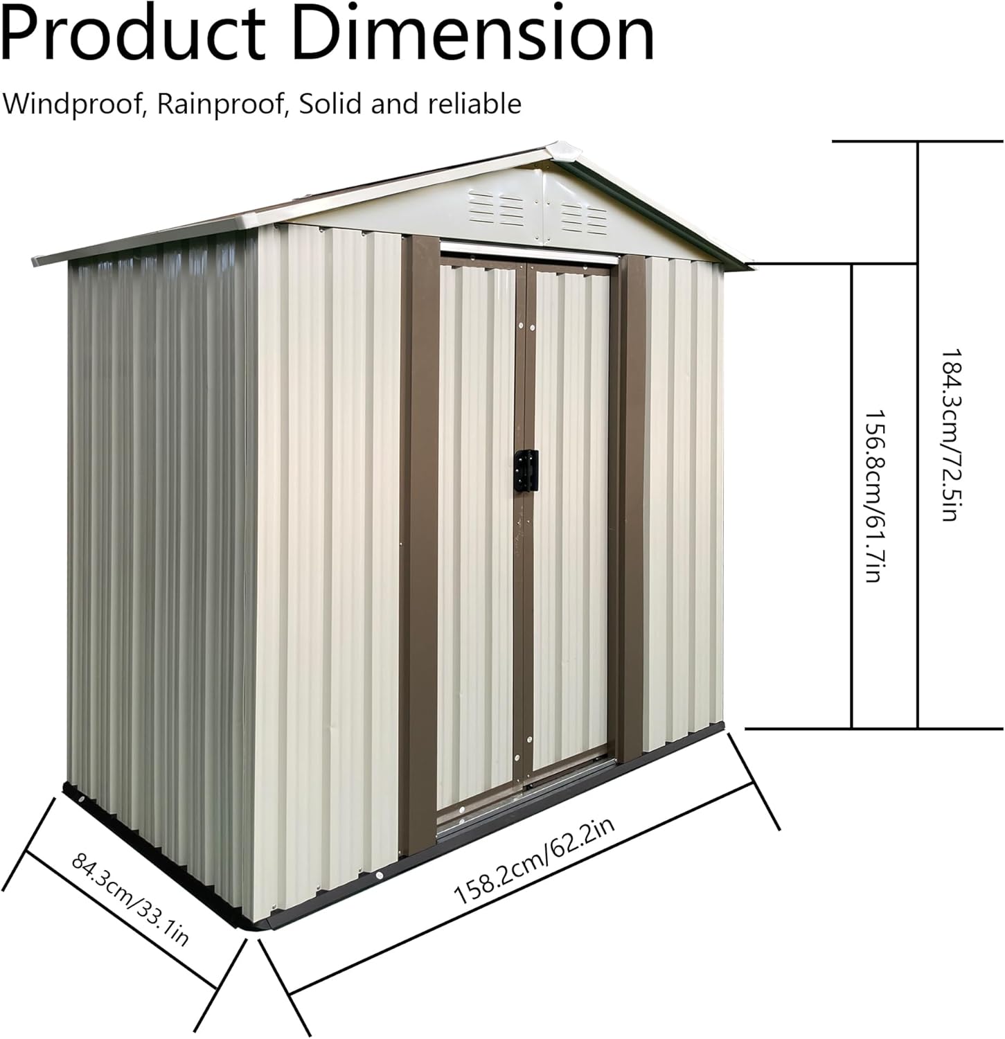 5X3 FT Outdoor Storage Shed, Waterproof Metal Garden Sheds w/Lockable Sliding Doors and Vents, Weather Resistant Tool Storage House for Backyard, Patio, Lawn, Cream White