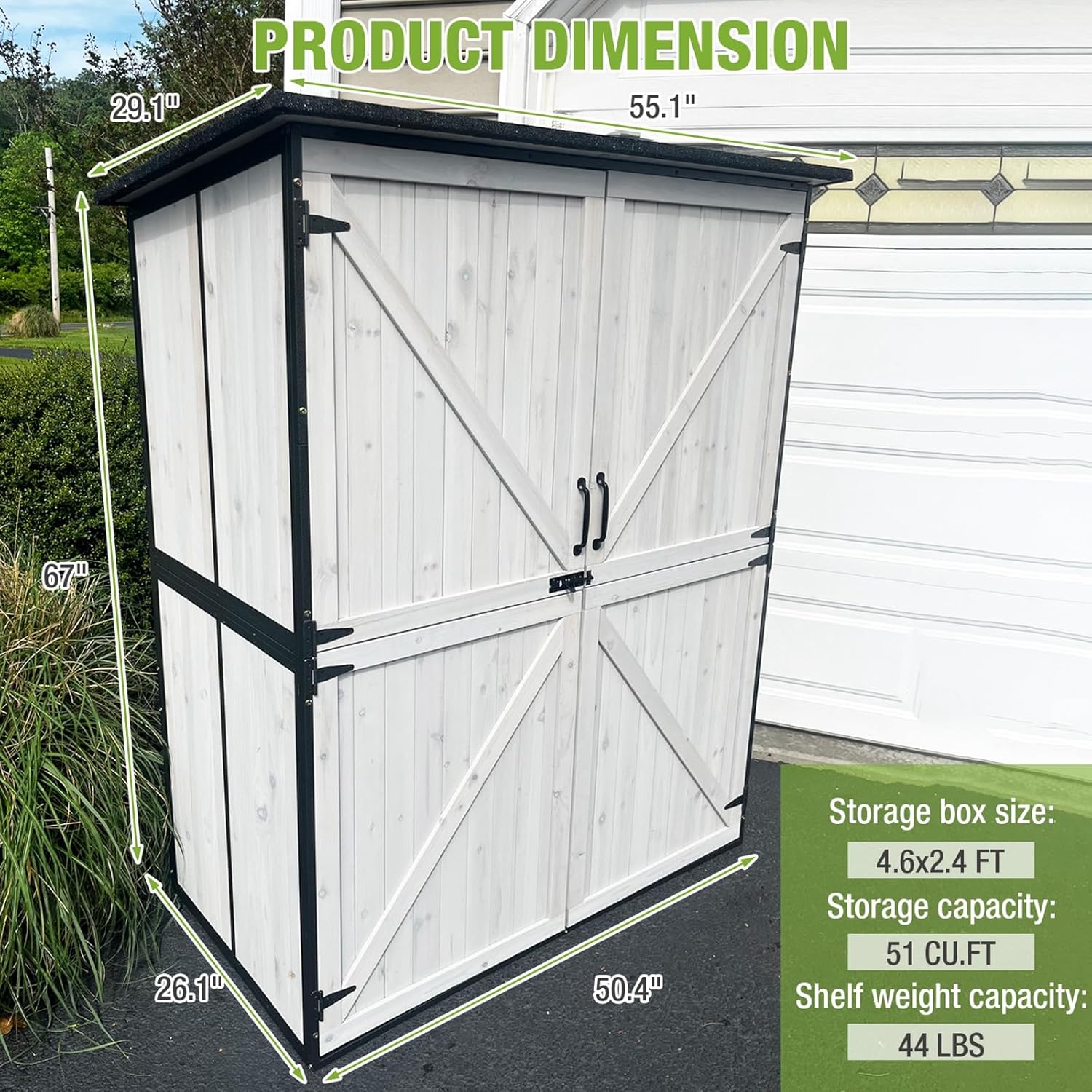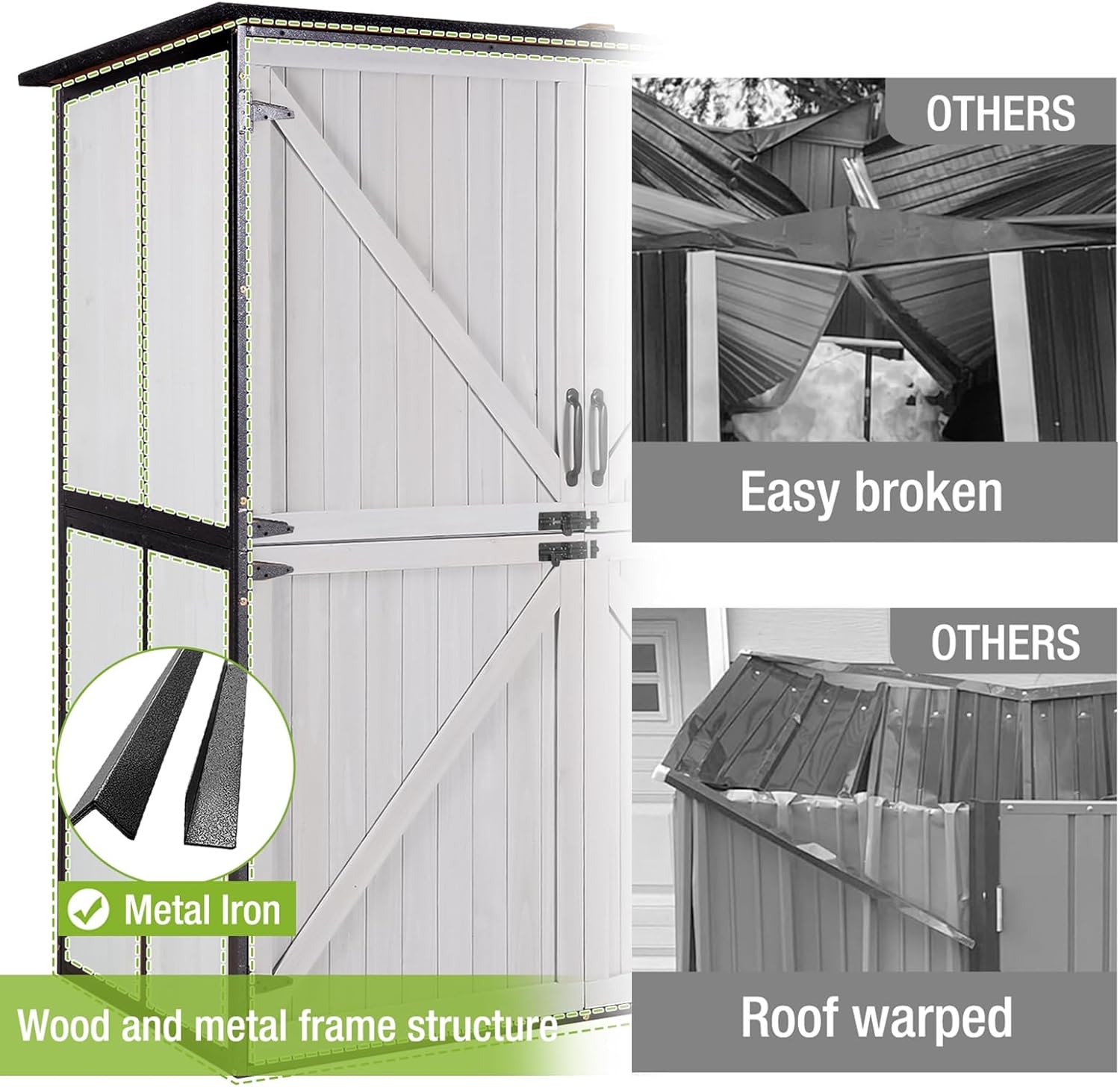 GUTINNEEN Outdoor Storage Shed with Metal Frame,Wooden Tool Cabinet with Adjustable Shelfs, House Garden Shed for Backyard Garden Patio Lawn